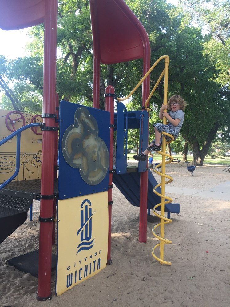 This cute park is located on Arkansas, near 25th (technically 2700 E. Woodland – http://www.wichita.gov/ParkandRec/CityParks/Pages/Evergreen.aspx).