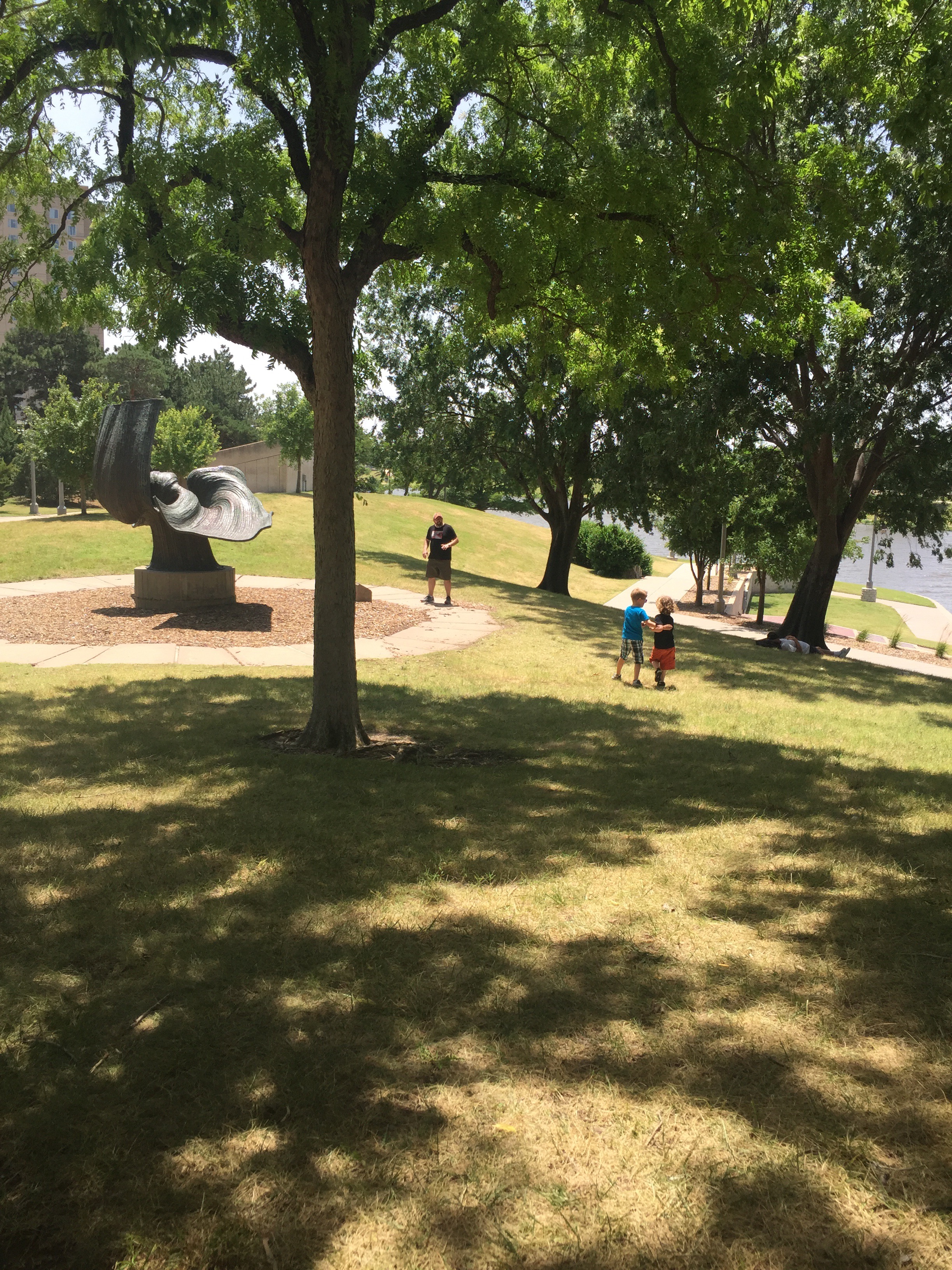 Our next stop was the park nestled between Century II, Douglas and the Arkansas River (401 W. Douglas – http://www.wichita.gov/ParkandRec/CityParks/Pages/APWoodard.aspx).