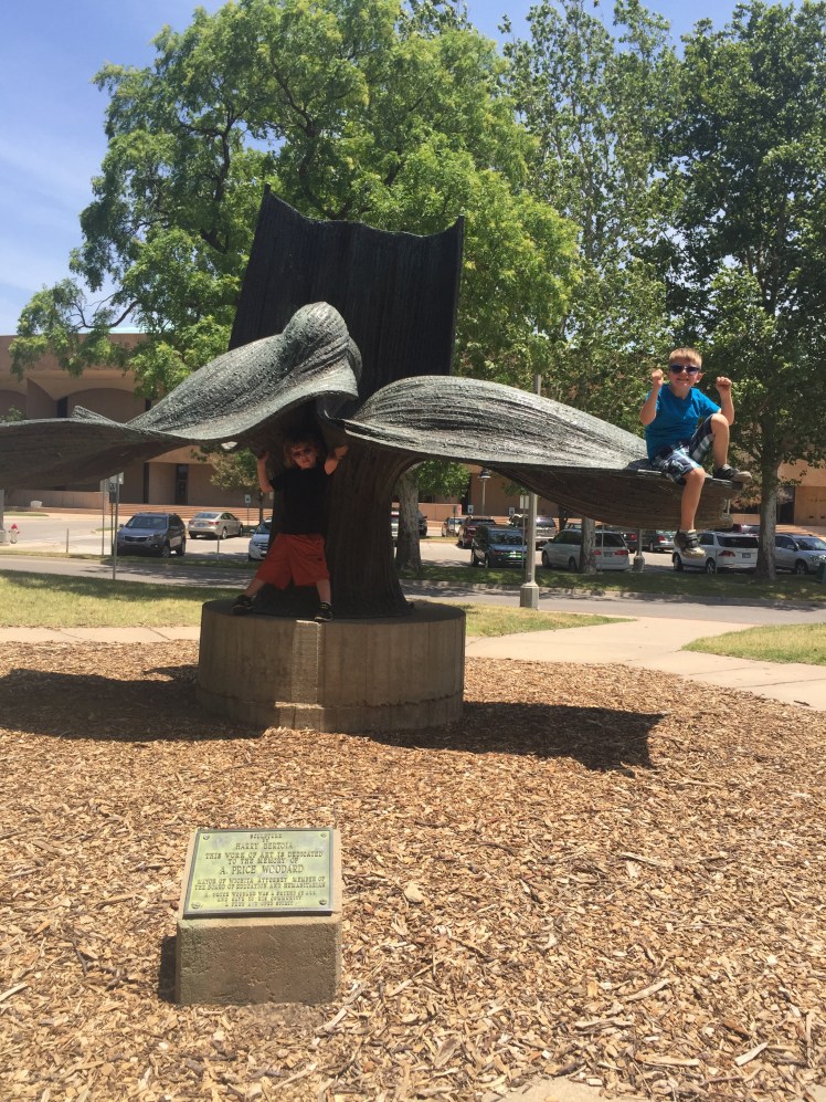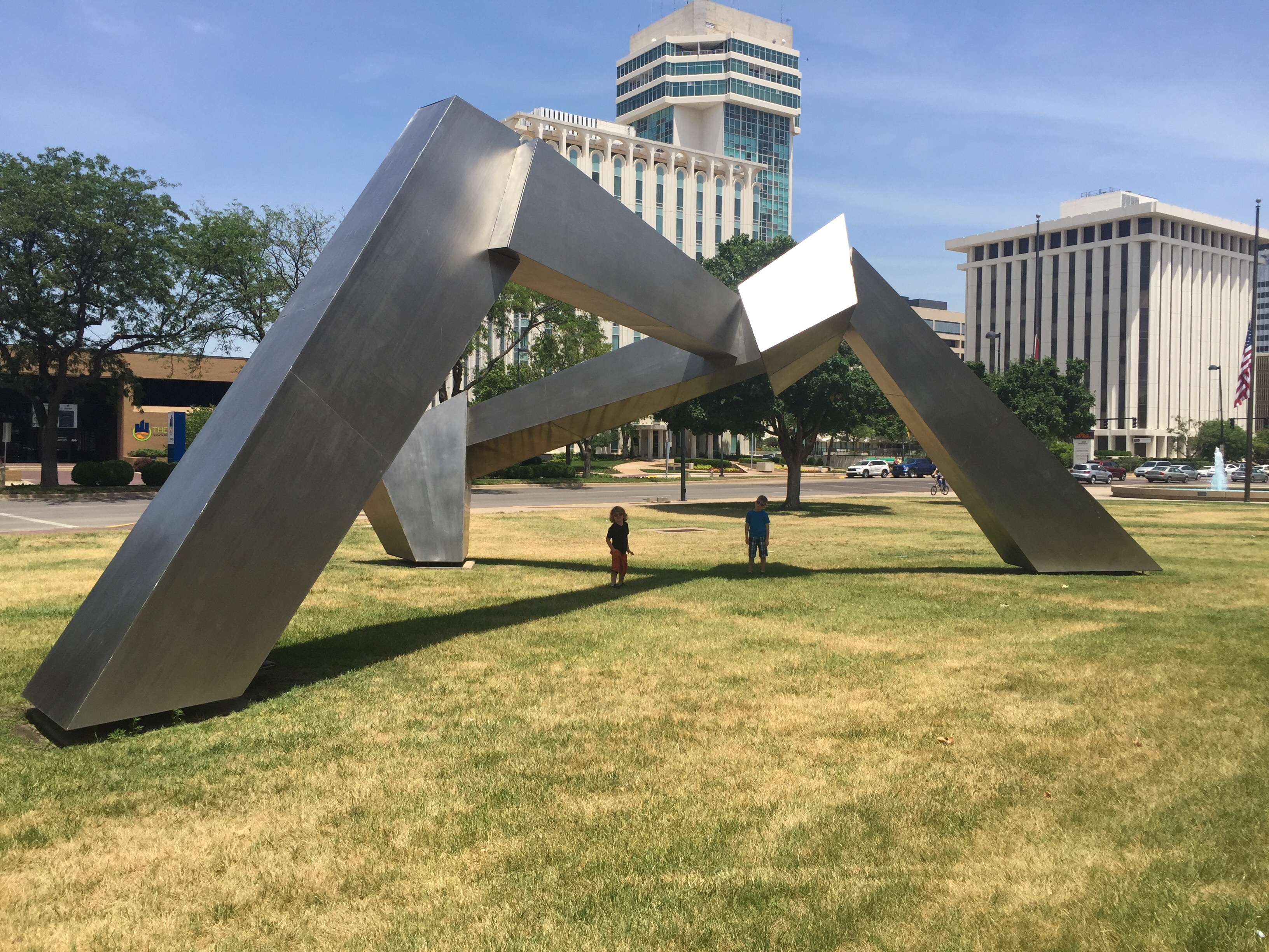 I used to play on this statue every Riverfest when I was a kid. I always thought it was a whale or waves, but it’s a bird according to the Wichita Parks and Rec website.