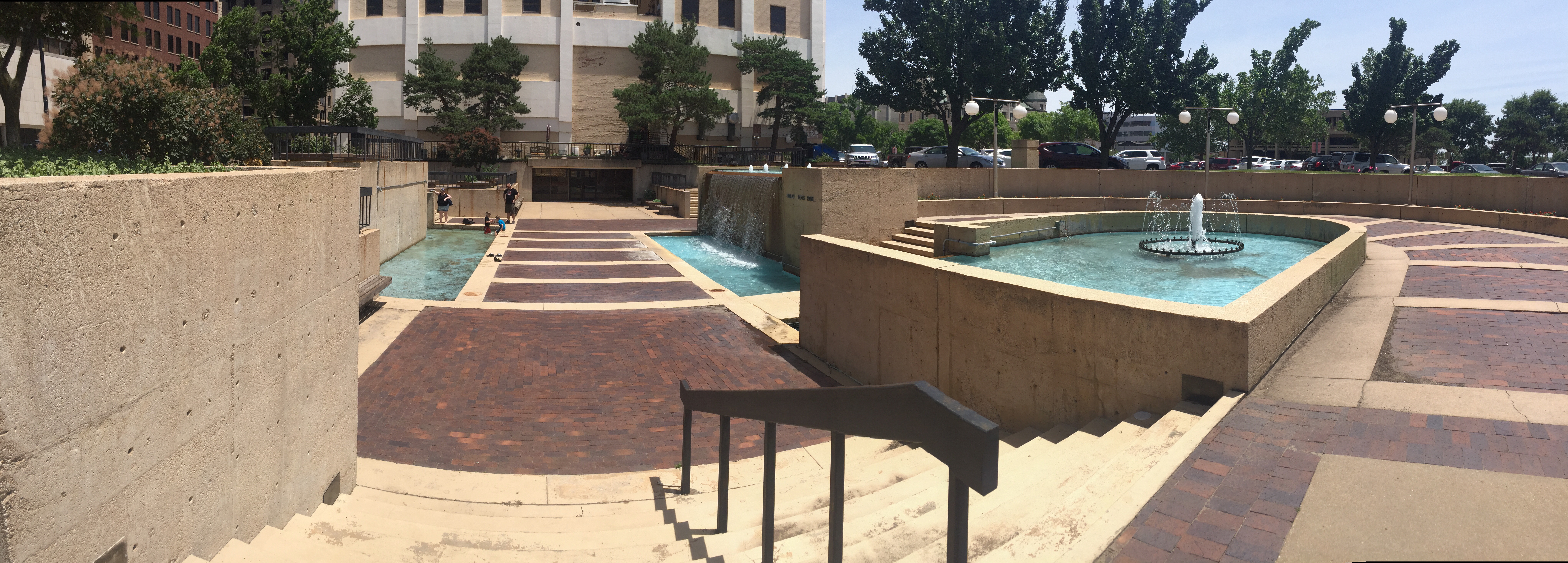This park is located at 123 W. Douglas, right by Century II. The boys recognized it as the water fountain that has the Christmas light dragon during the holidays.