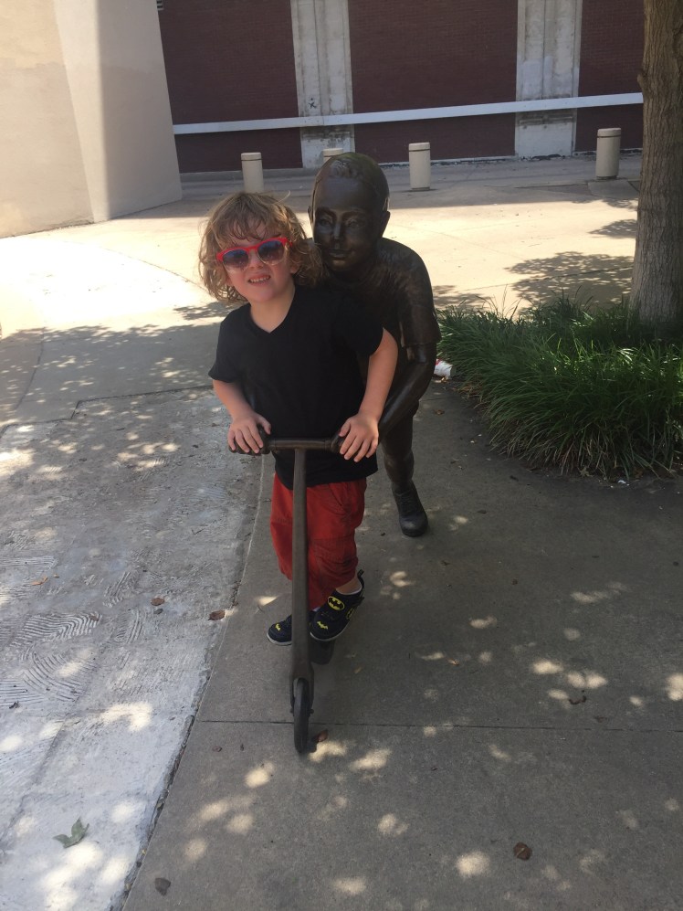 Kid Tips: Weston had fun with the water feature and Sully enjoyed kissing and playing with all the sculptures!