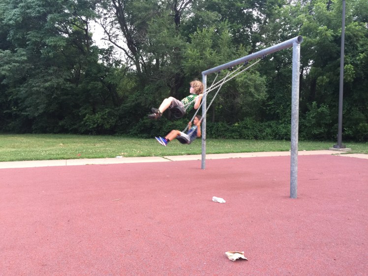 Kid Tips: “The kids at this park were really nice, and we played an awesome game of tag!”- Weston. Sully enjoyed the “spinny donut thing” and the swings.