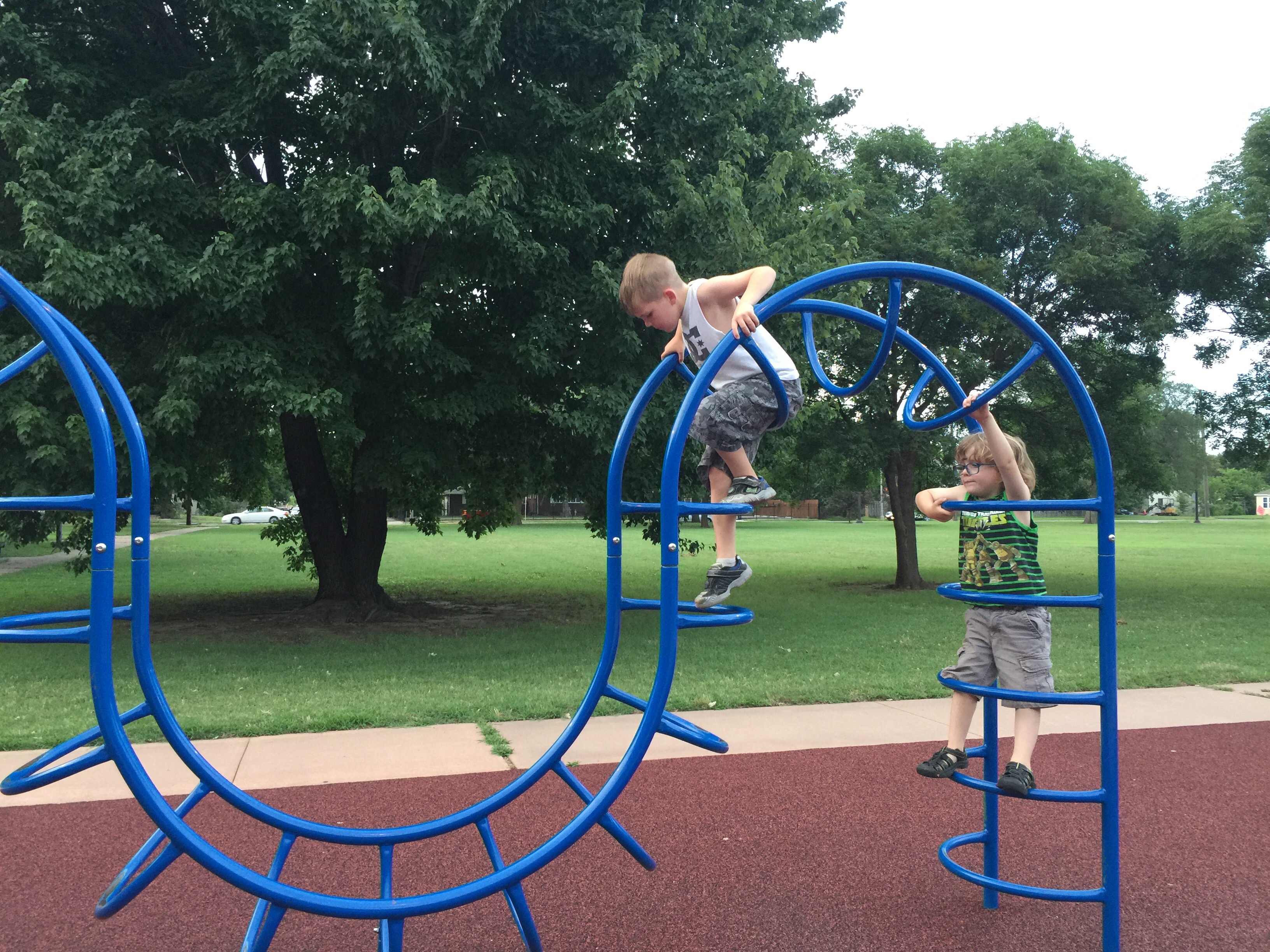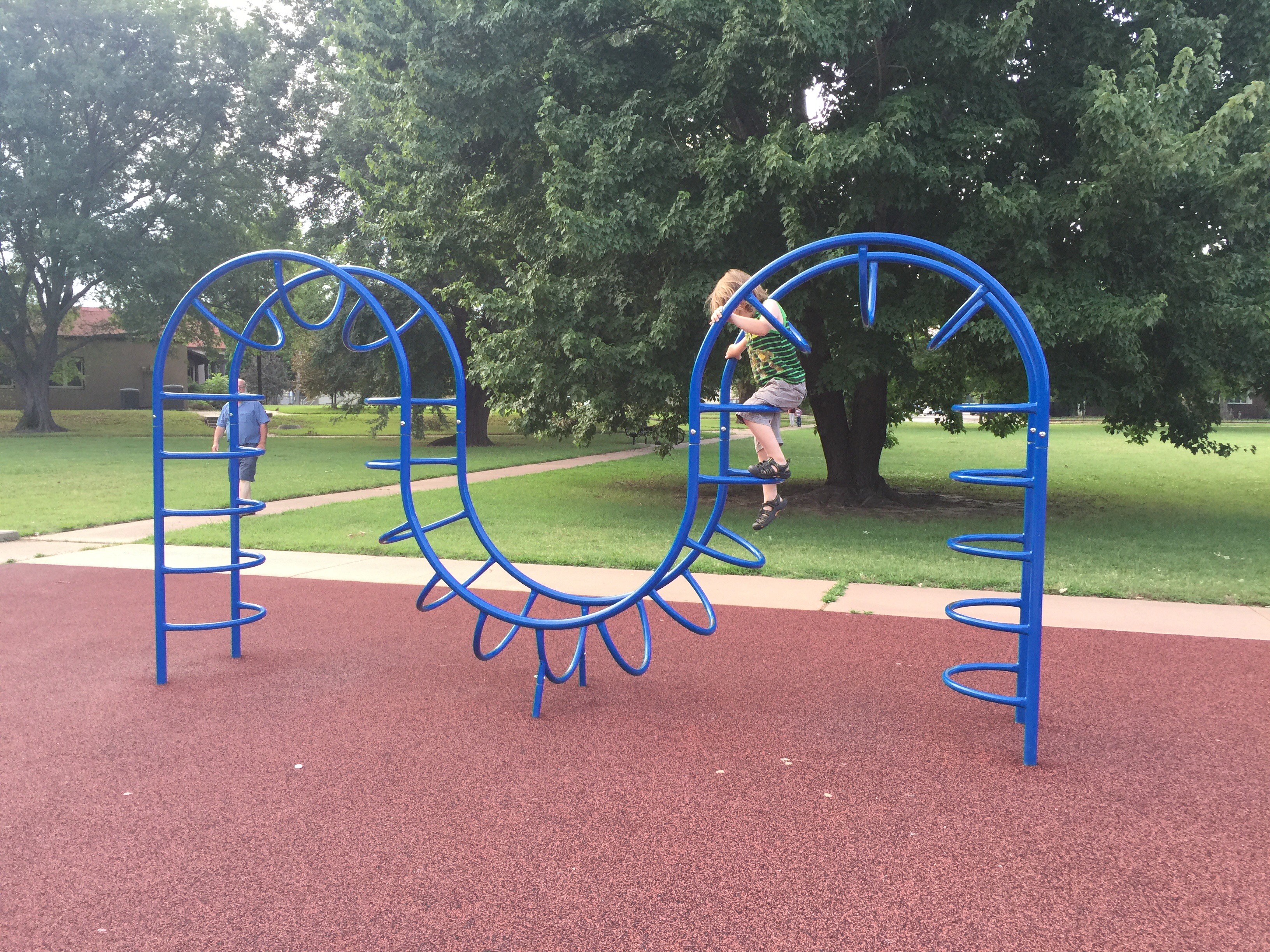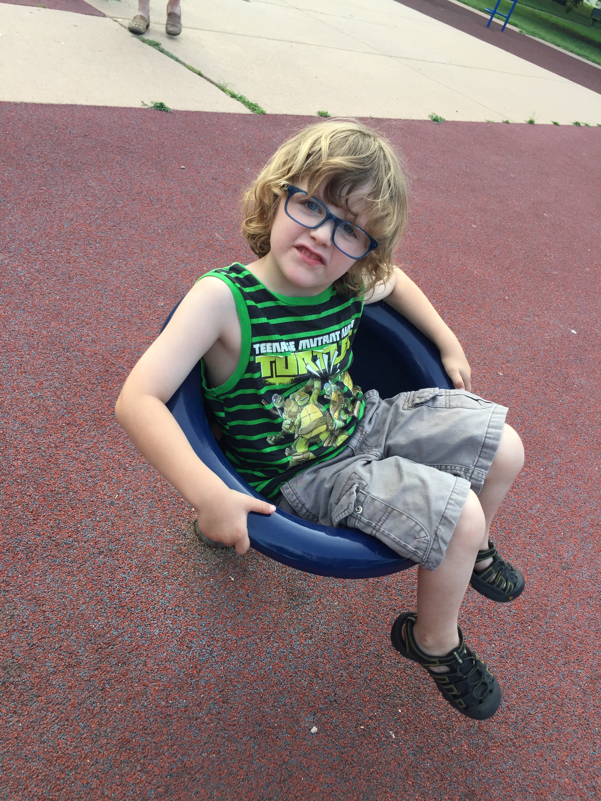 Kid Tips: “The kids at this park were really nice, and we played an awesome game of tag!”- Weston. Sully enjoyed the “spinny donut thing” and the swings.