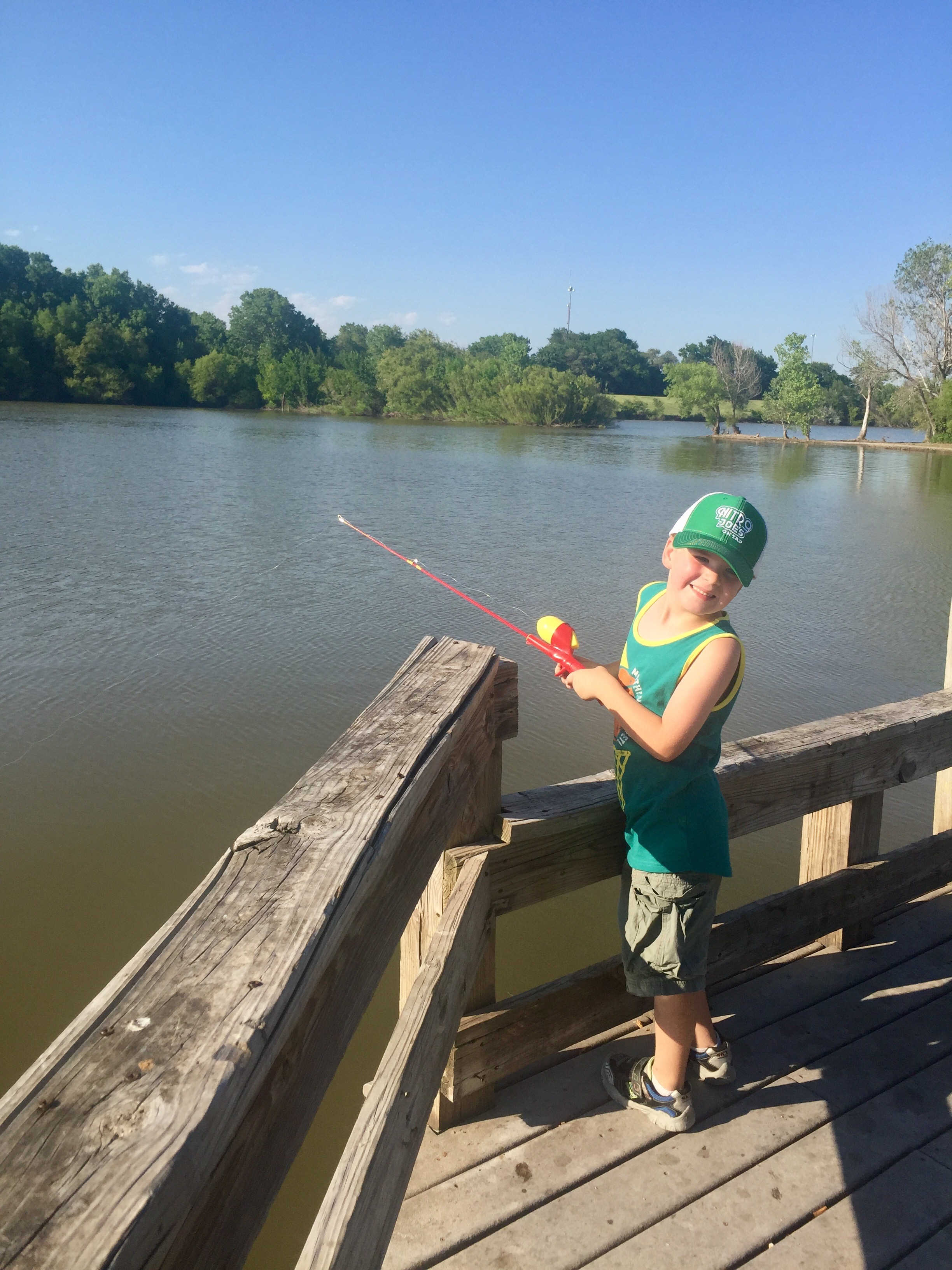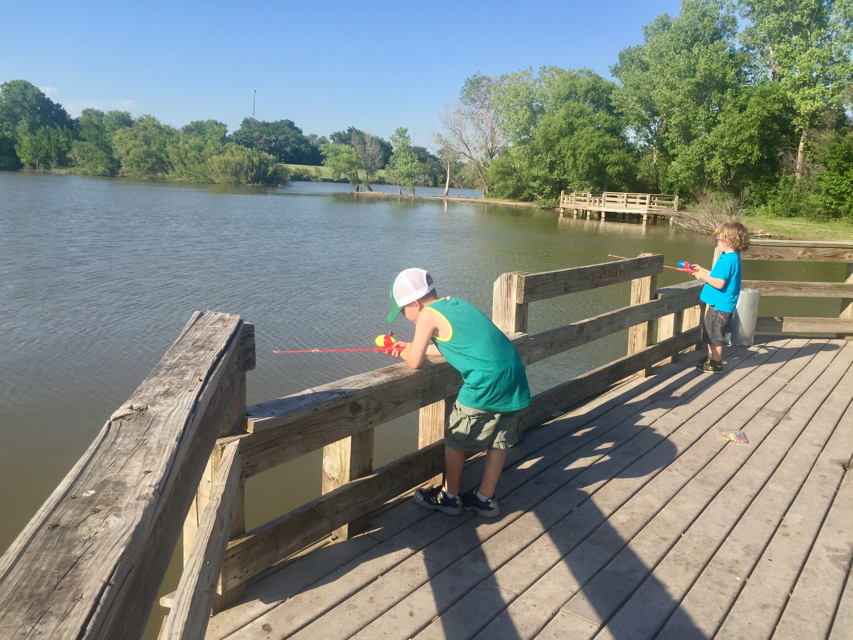 It was beautiful, relaxing and great for fishing with kids. There were lots of docks with low enough railing for them to cast.