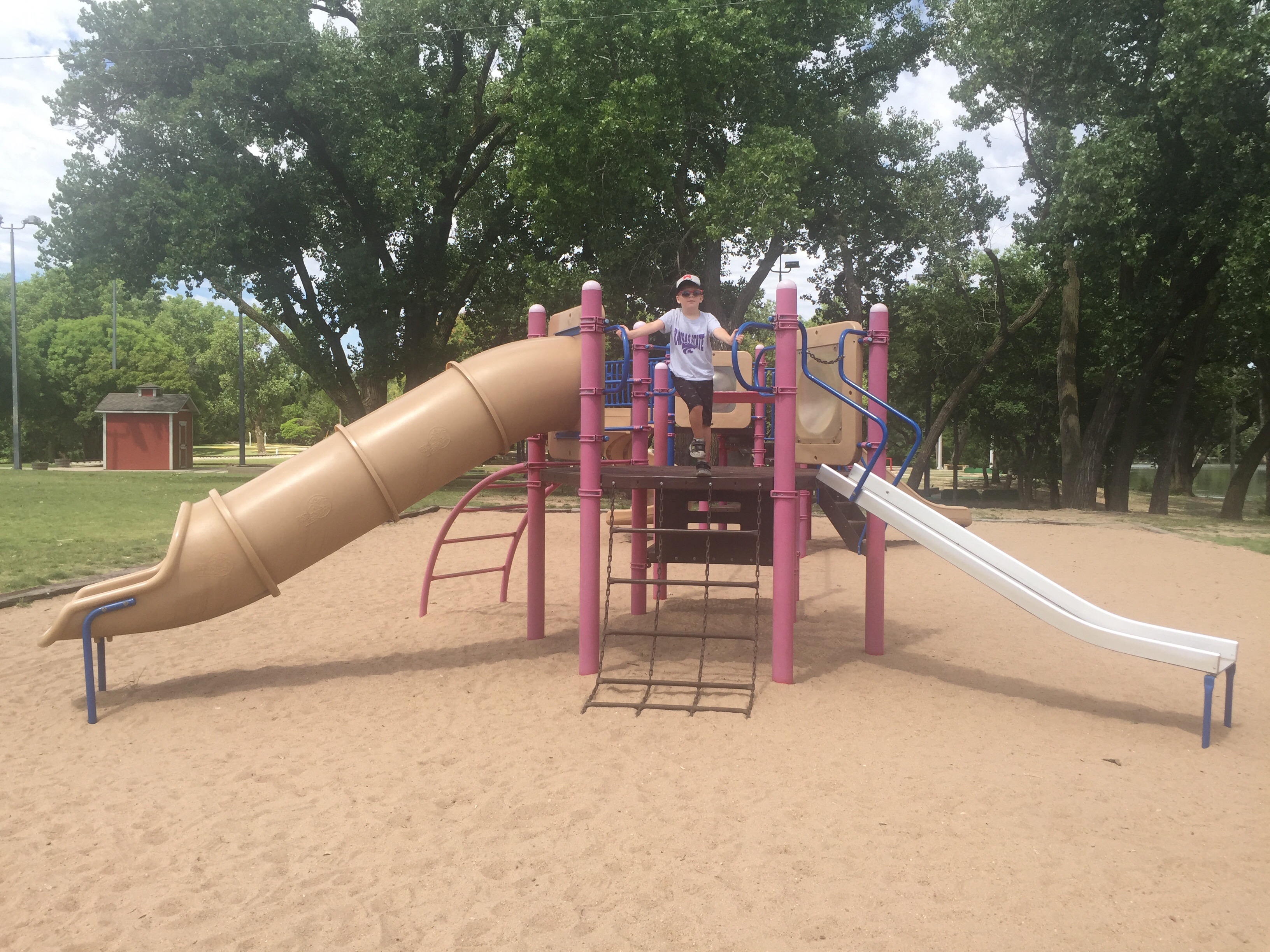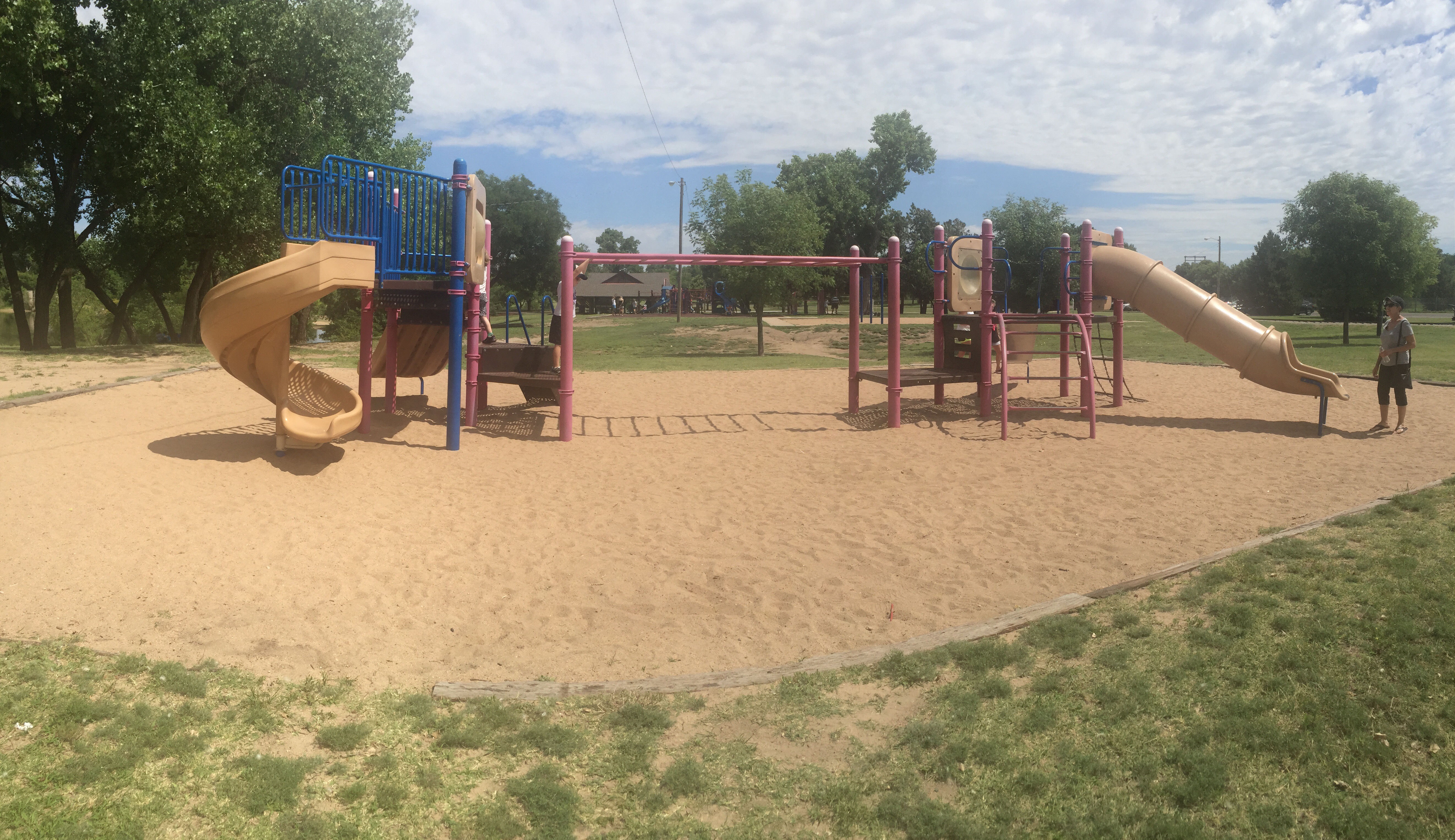 This park is huge and there is so much to do here! The Wichita Parks and Rec website says it’s 119 acres, which includes a 40 acre lake.