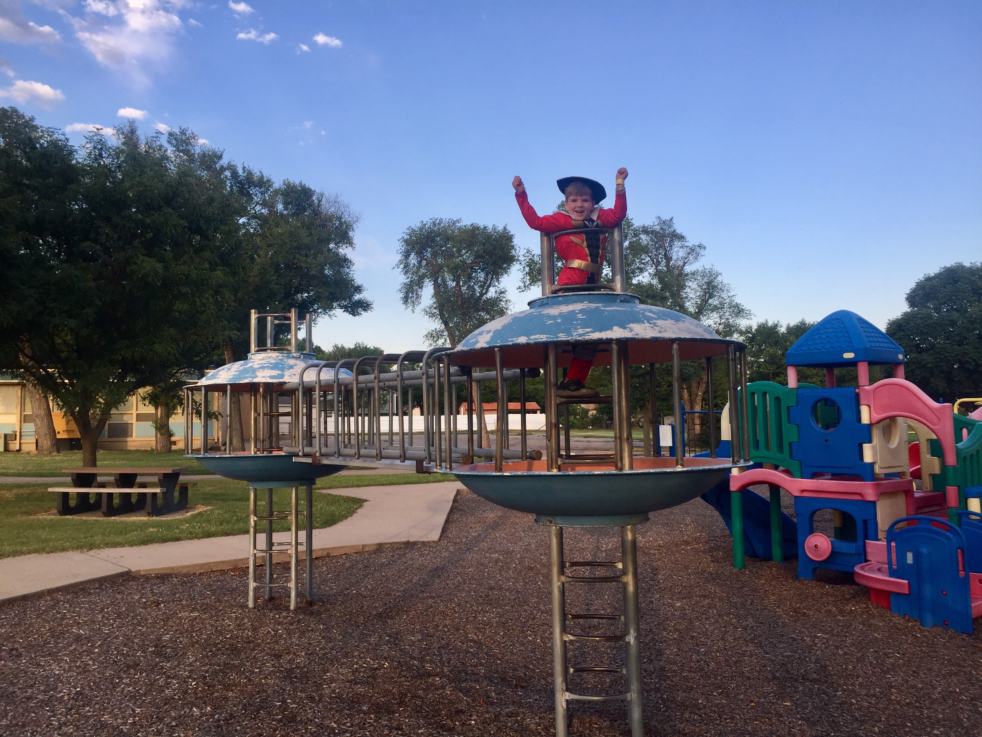 The old metal play structure caught our attention and we couldn’t wait to try it out! I can remember playing on similar structures when I was a kid.