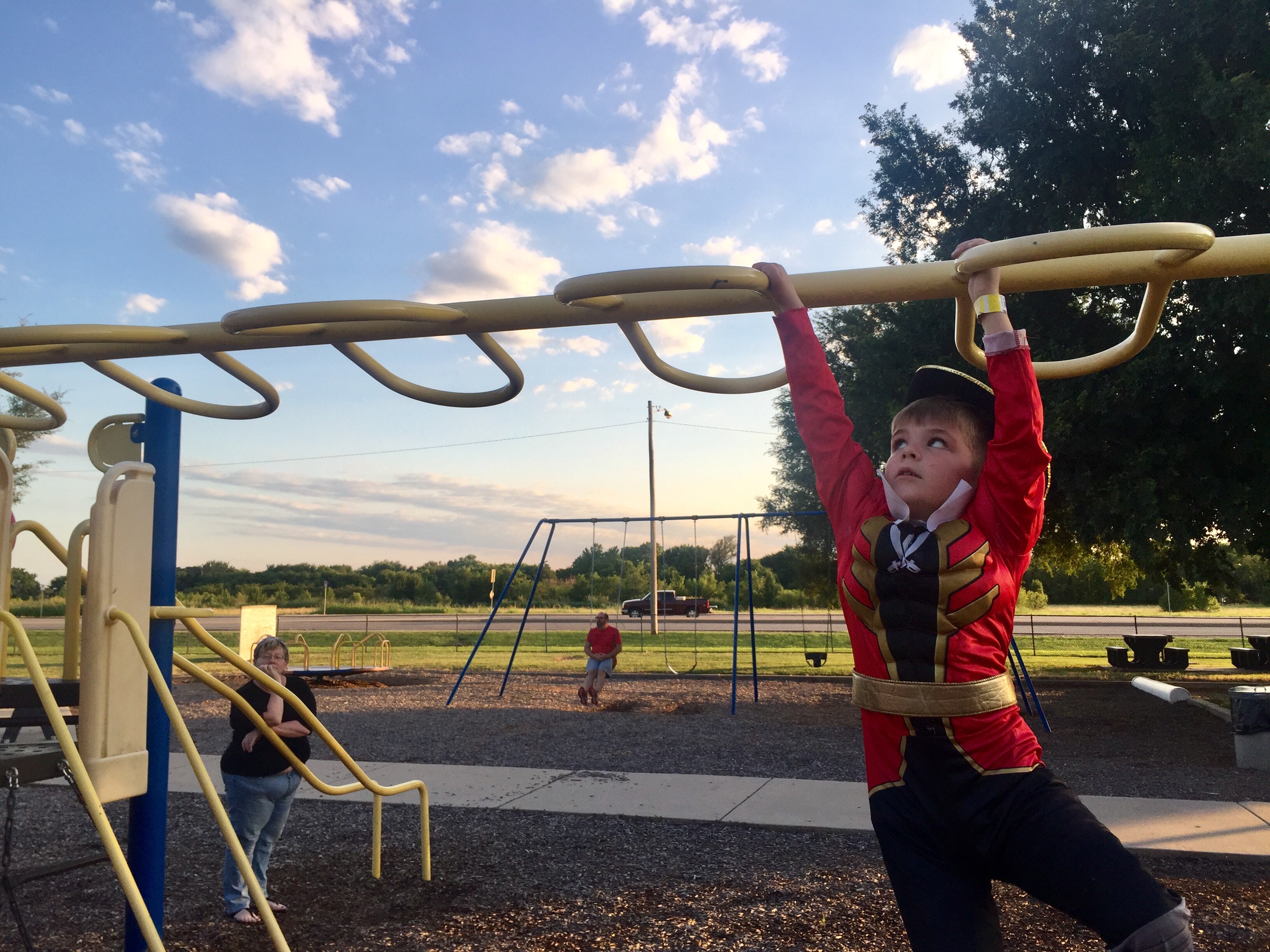 The park also has a cool fitness area that Weston enjoyed.