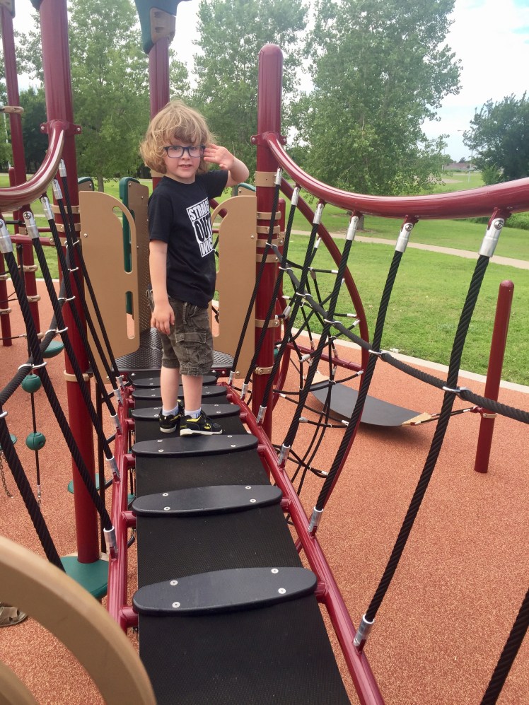 Kid Tips: Weston loves this park! He said it helped with his ninja/army training! Sully had fun running across the bridge and climbing the tower while jokingly screaming “I’m scared of the heights!”