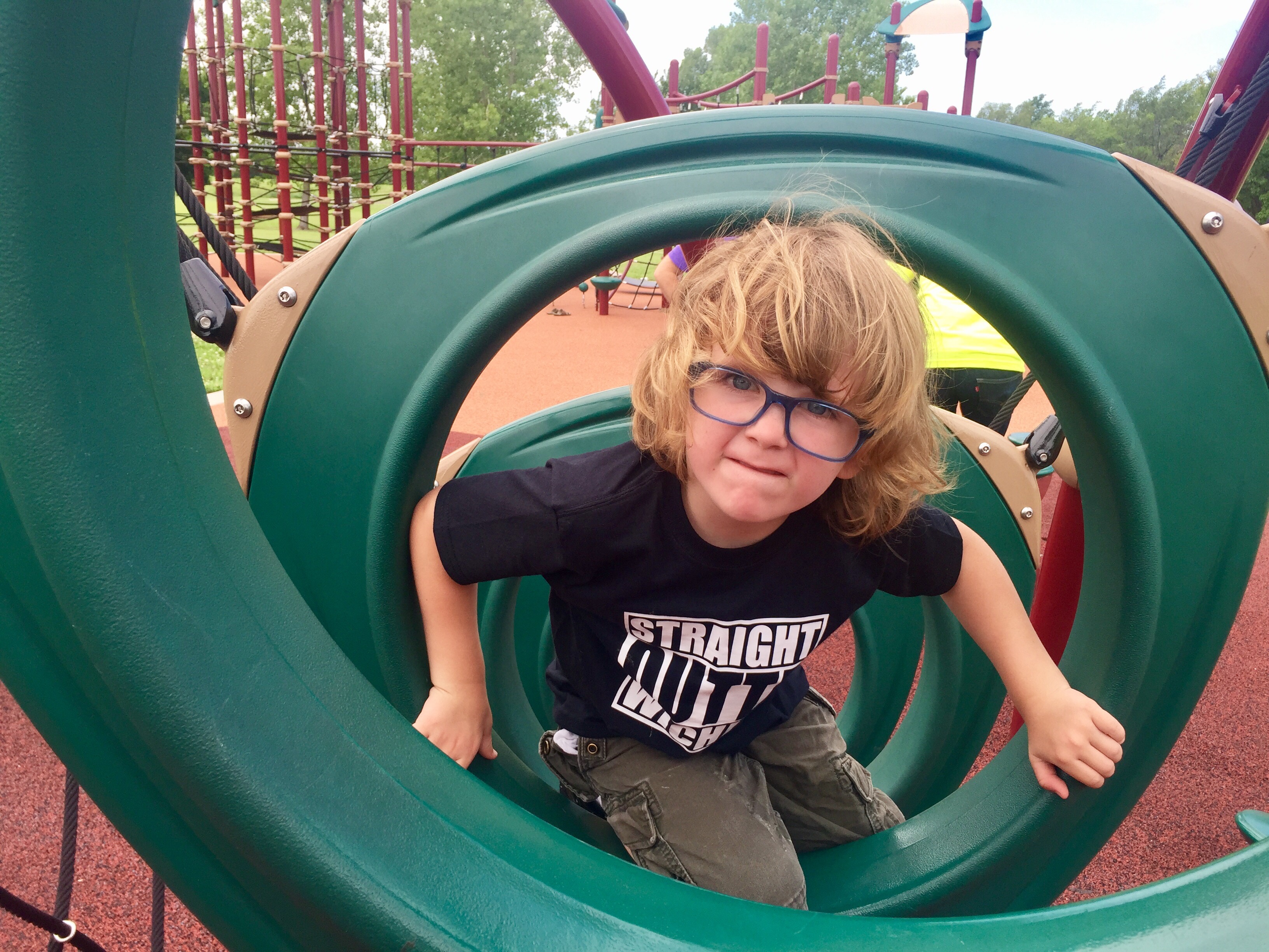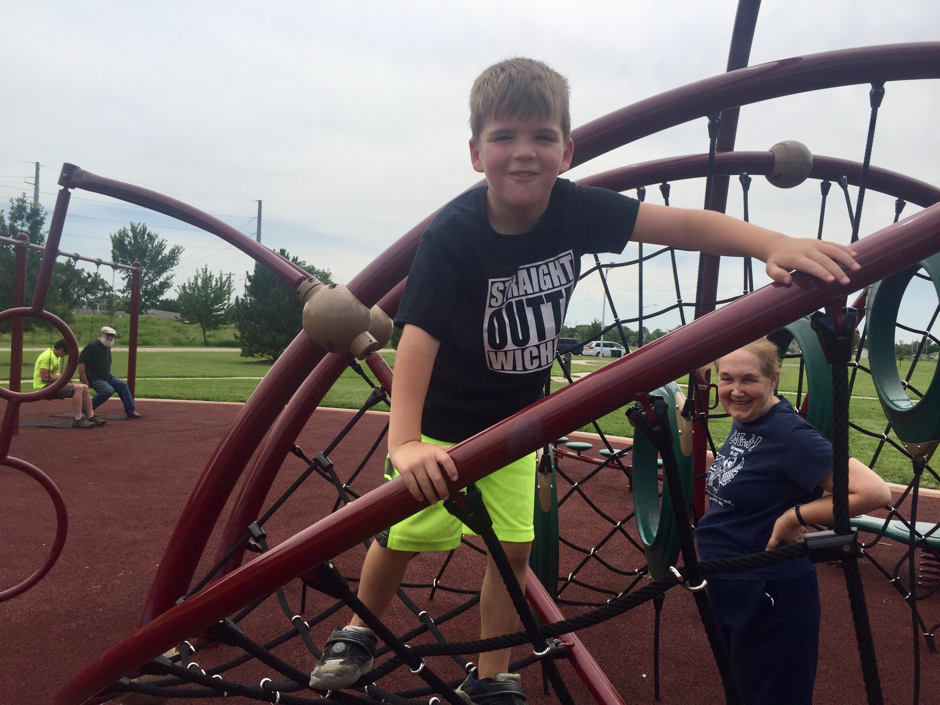 The east side playground was amazing! It has a ton of things to do. A climbing tower, slide, and all kinds of “awesome ninja training stuff.”