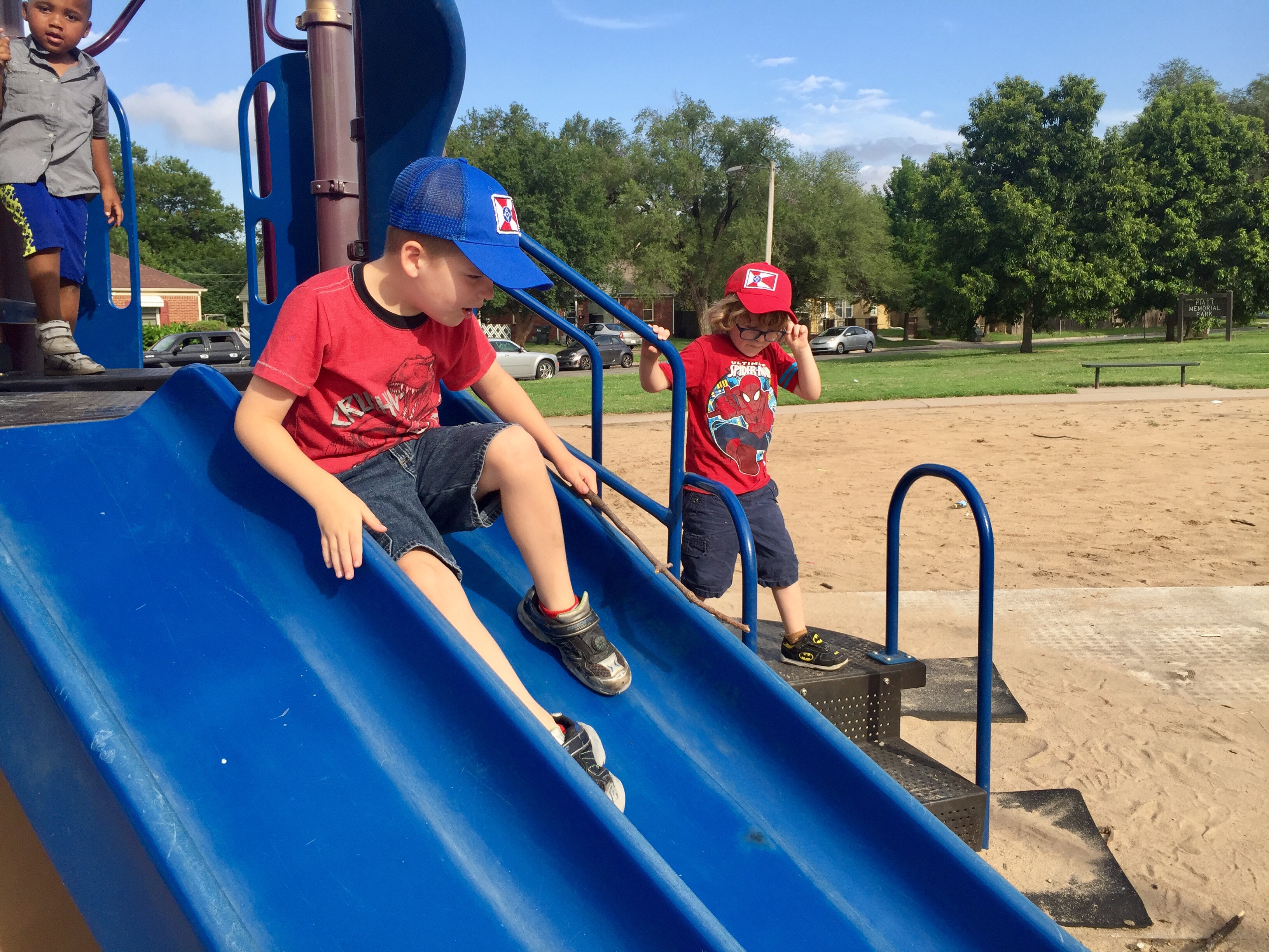 Piatt Memorial Park was our first stop on Monday. As far as neighborhood parks are concerned, this was probably the most used and populated. This park is at the 1965 KC-135 plane crash site (2037 N. Piatt), near Piatt and 21st Street.