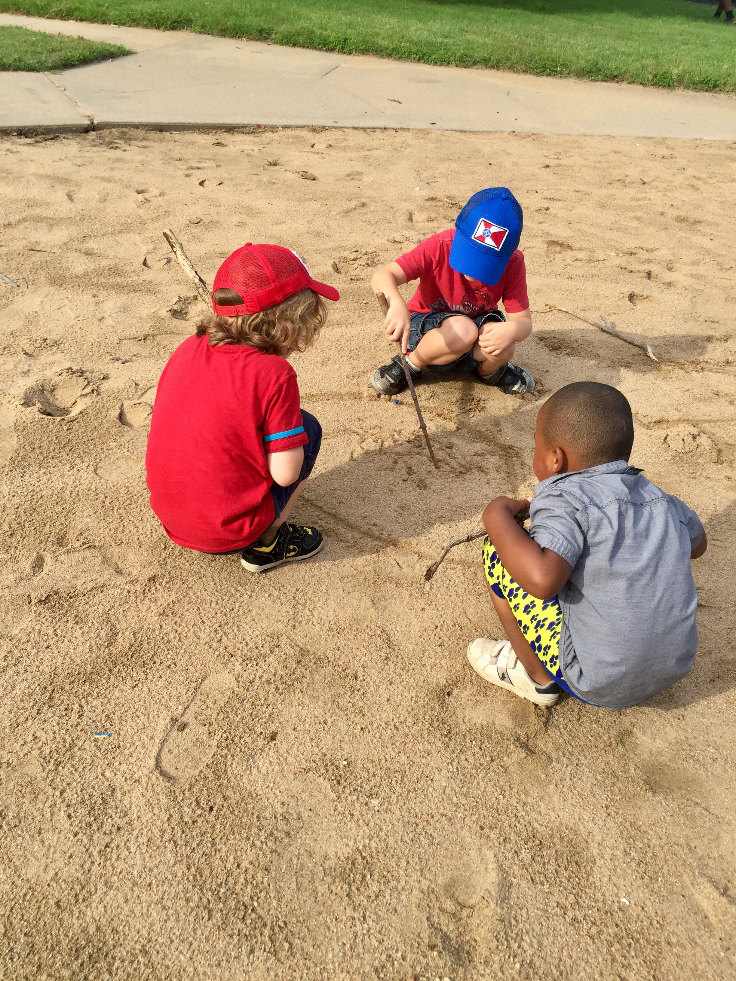 Kid Tips: Weston wants to come back with sand tools to build sand castles (the sand was easy to pack). Sully had fun selling “sand”wiches under the playground.