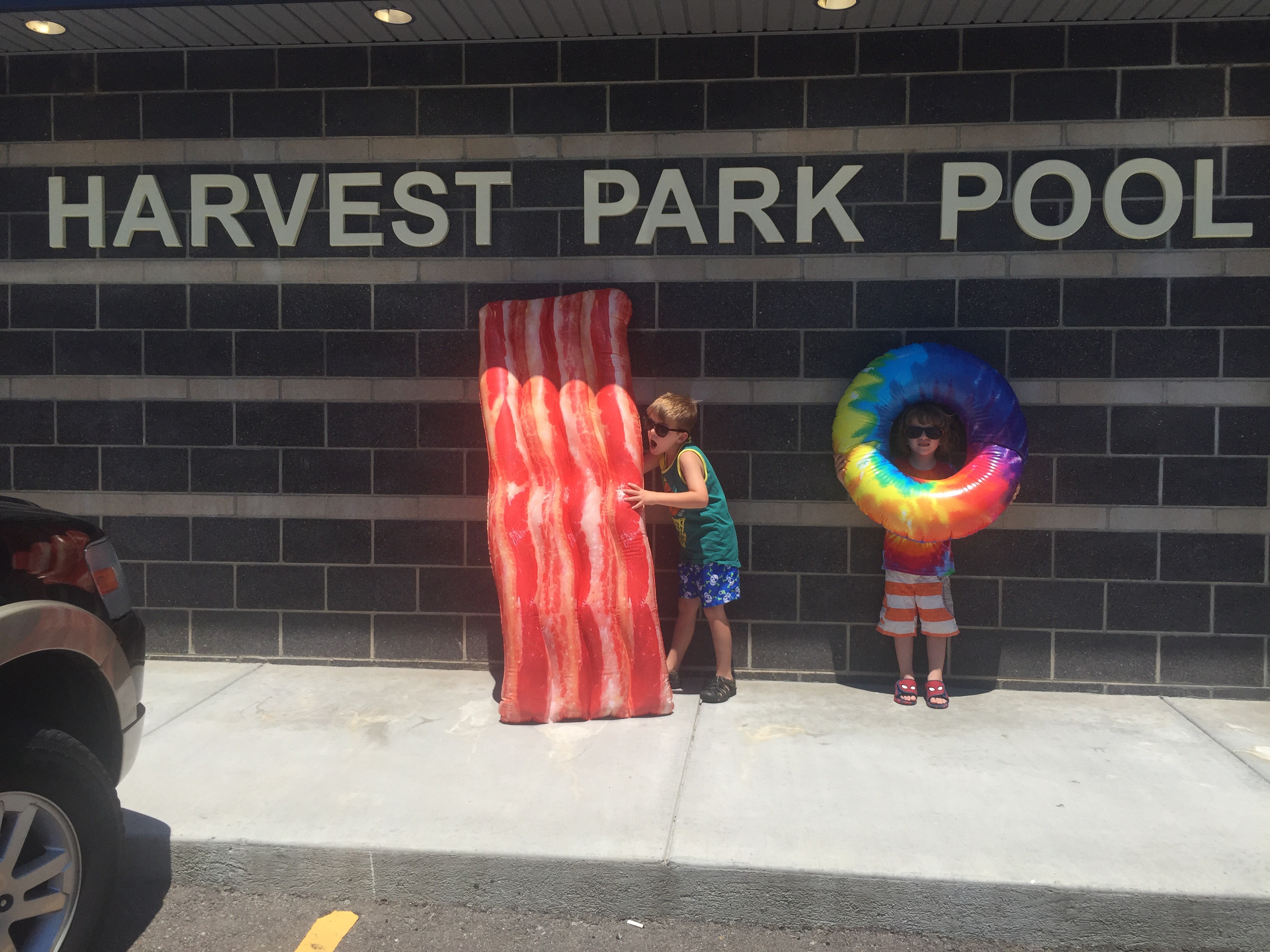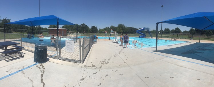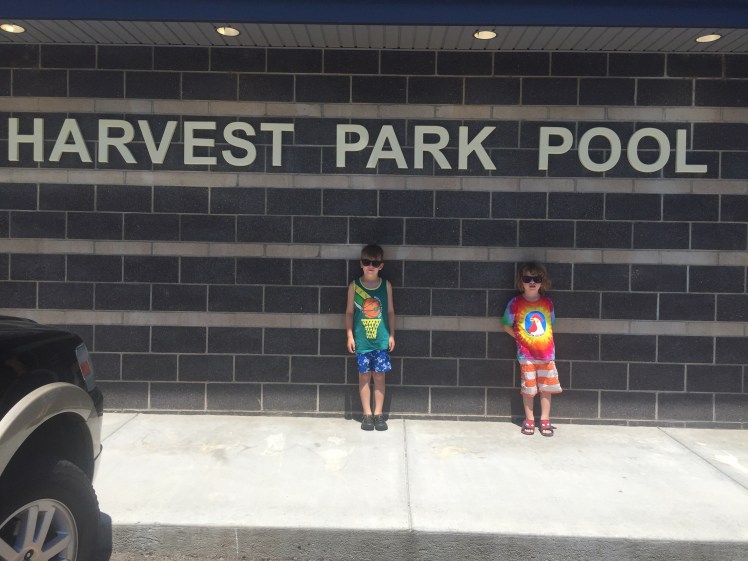 On this hot summer Sunday we hit the city pool at Harvest Park. For a mere $8 (total), our family got to swim, relax and go down the awesome water slide.