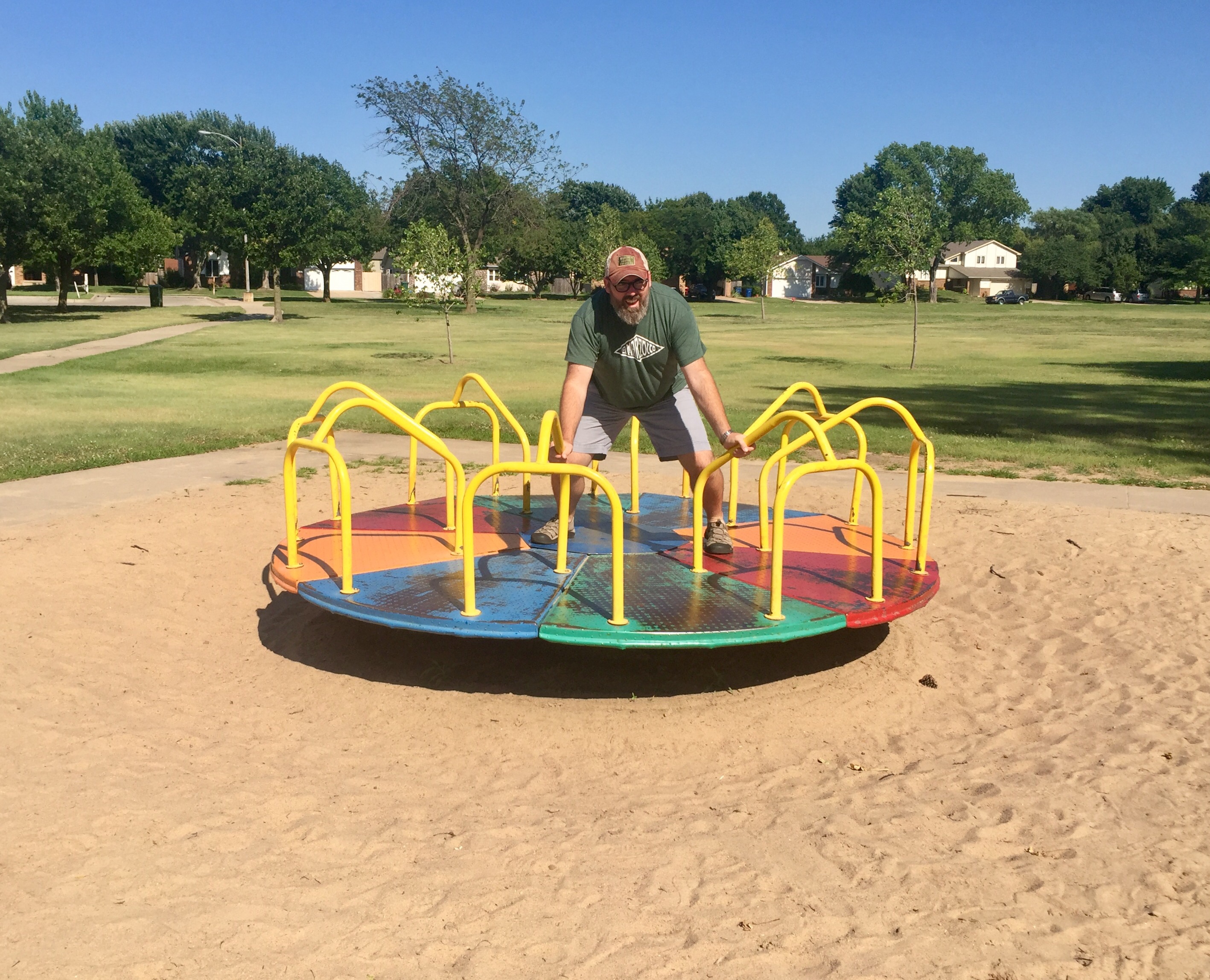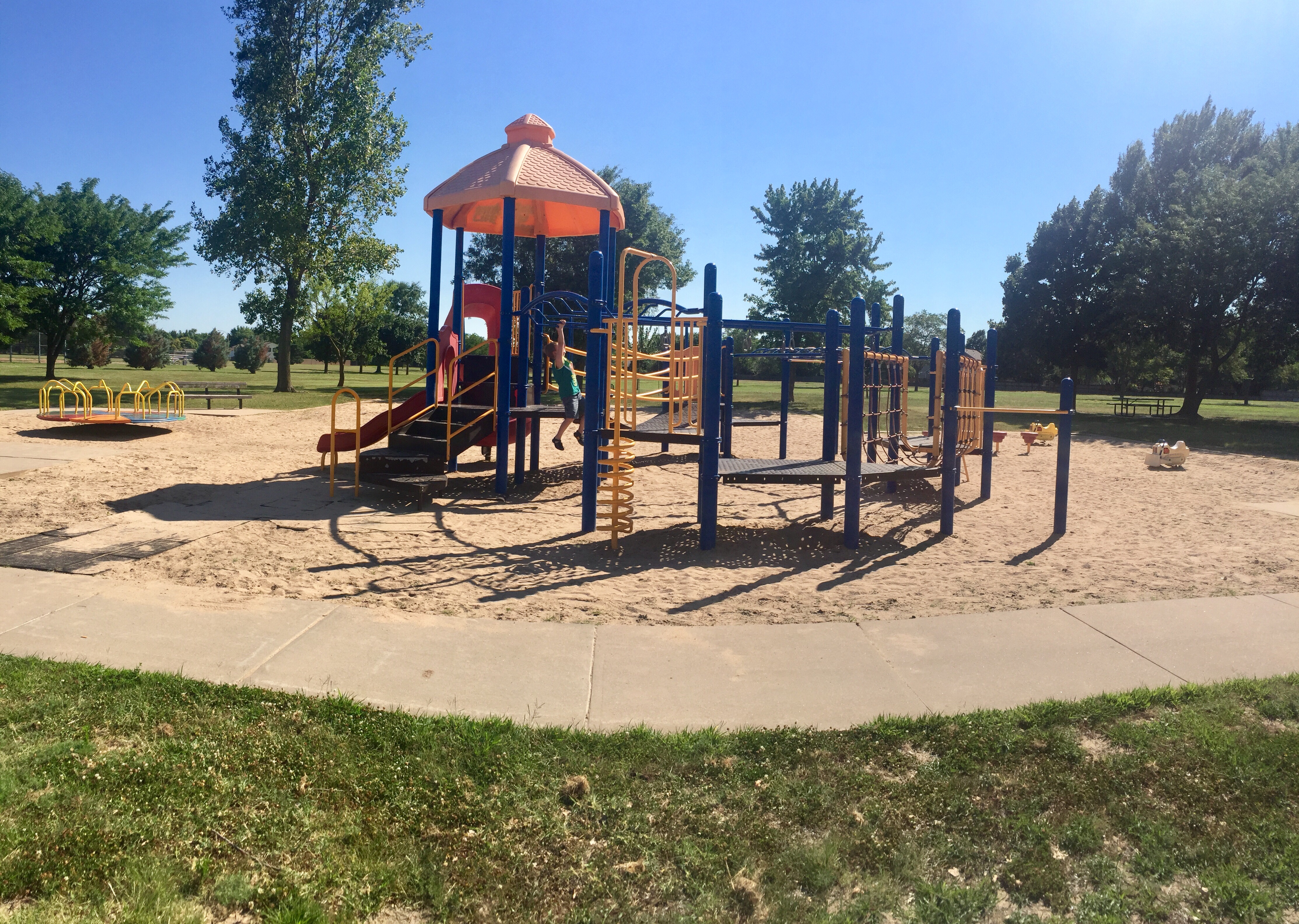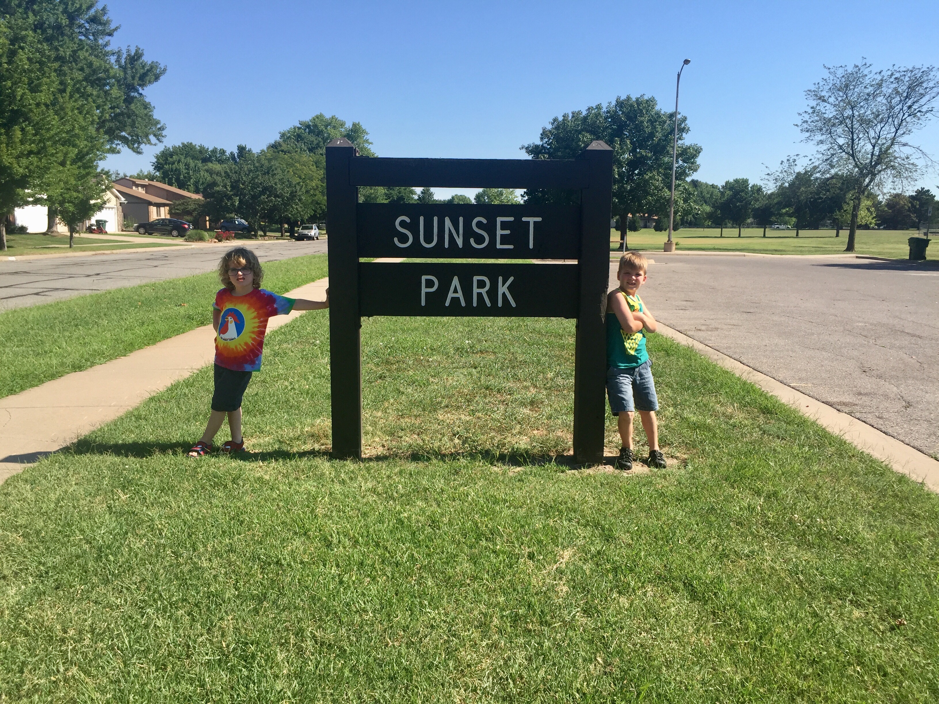Sunset Park was a delight in Northwest Wichita. Located in the neighborhood northwest of 13th and Tyler (1851 N. Keith), this park had something for everyone. Swings, monkey bars, shaded seating…