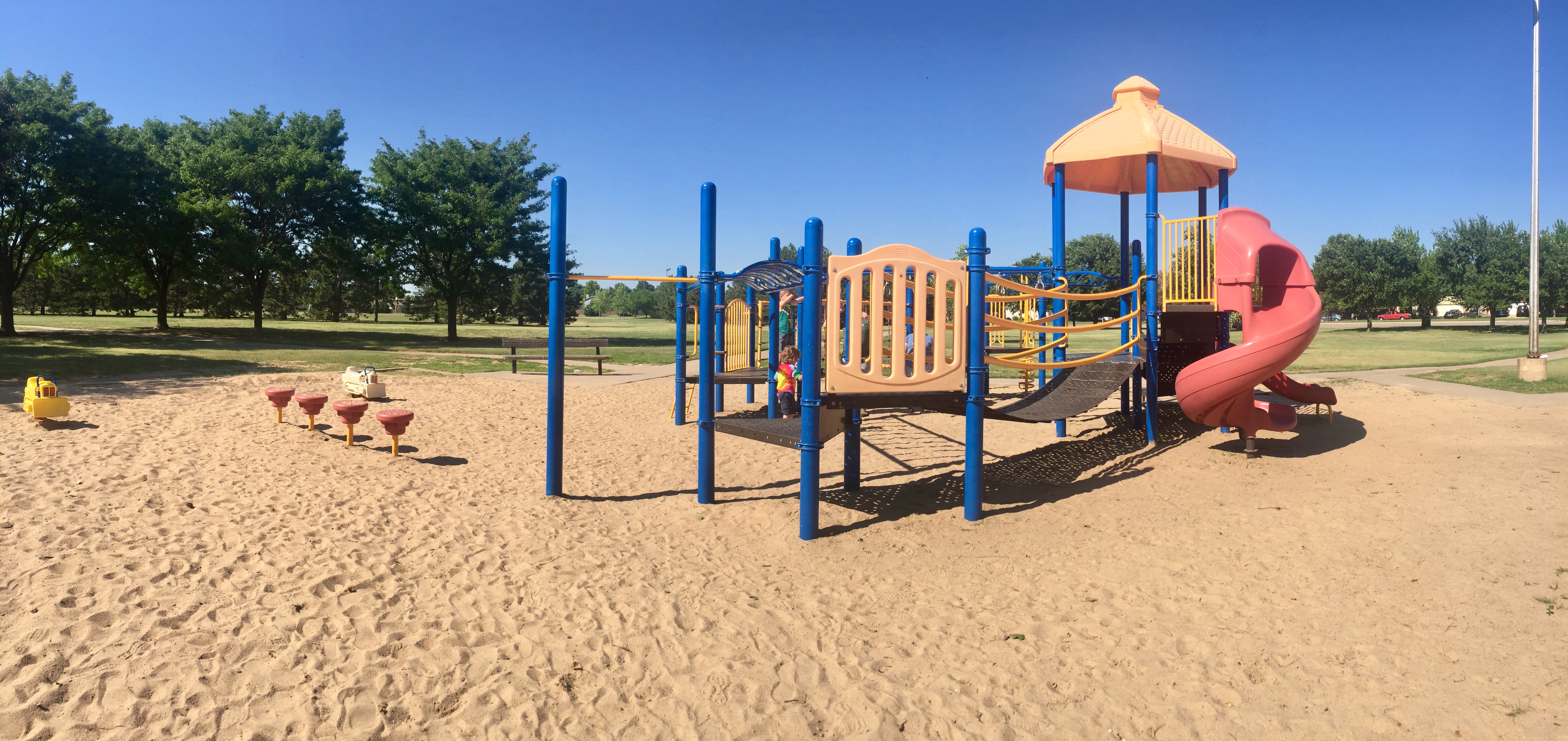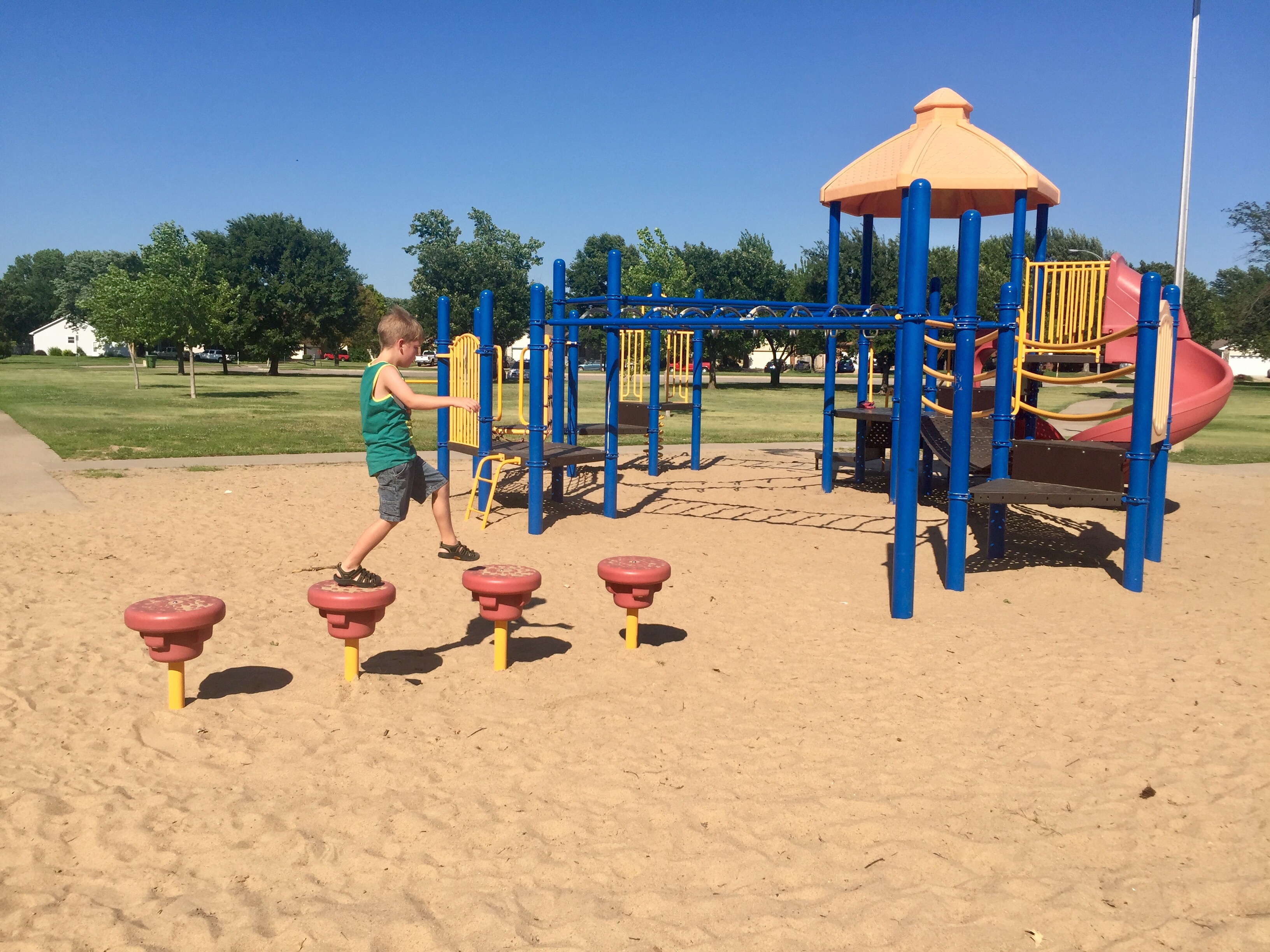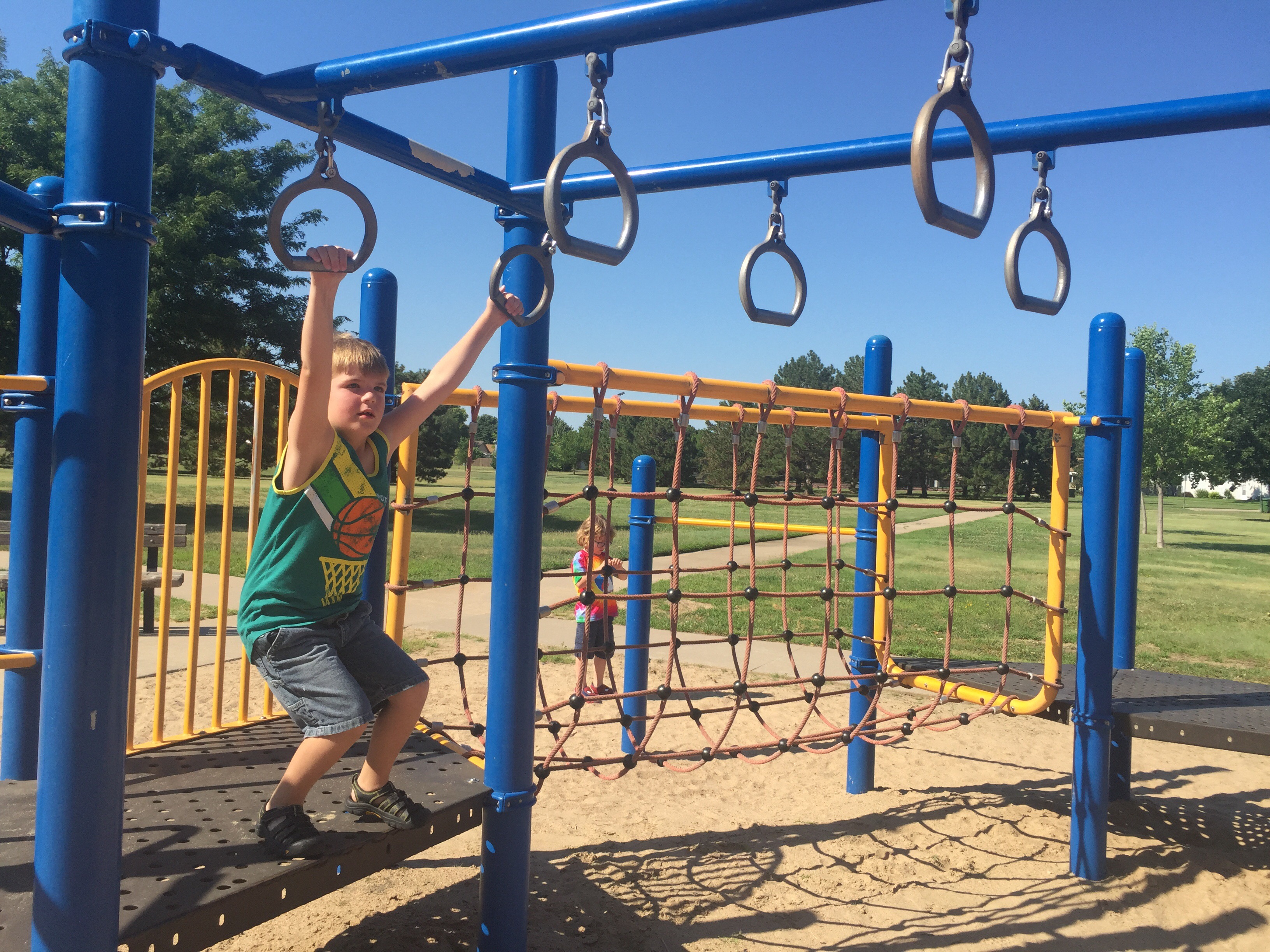 Kid Tips: The playground had a bunch of different monkey bars, so Weston was in heaven. Sully loved running across the bridges and playing in the sand. Weston only wished they had a bathroom. Our visit was cut short due to a "pee-mergency."