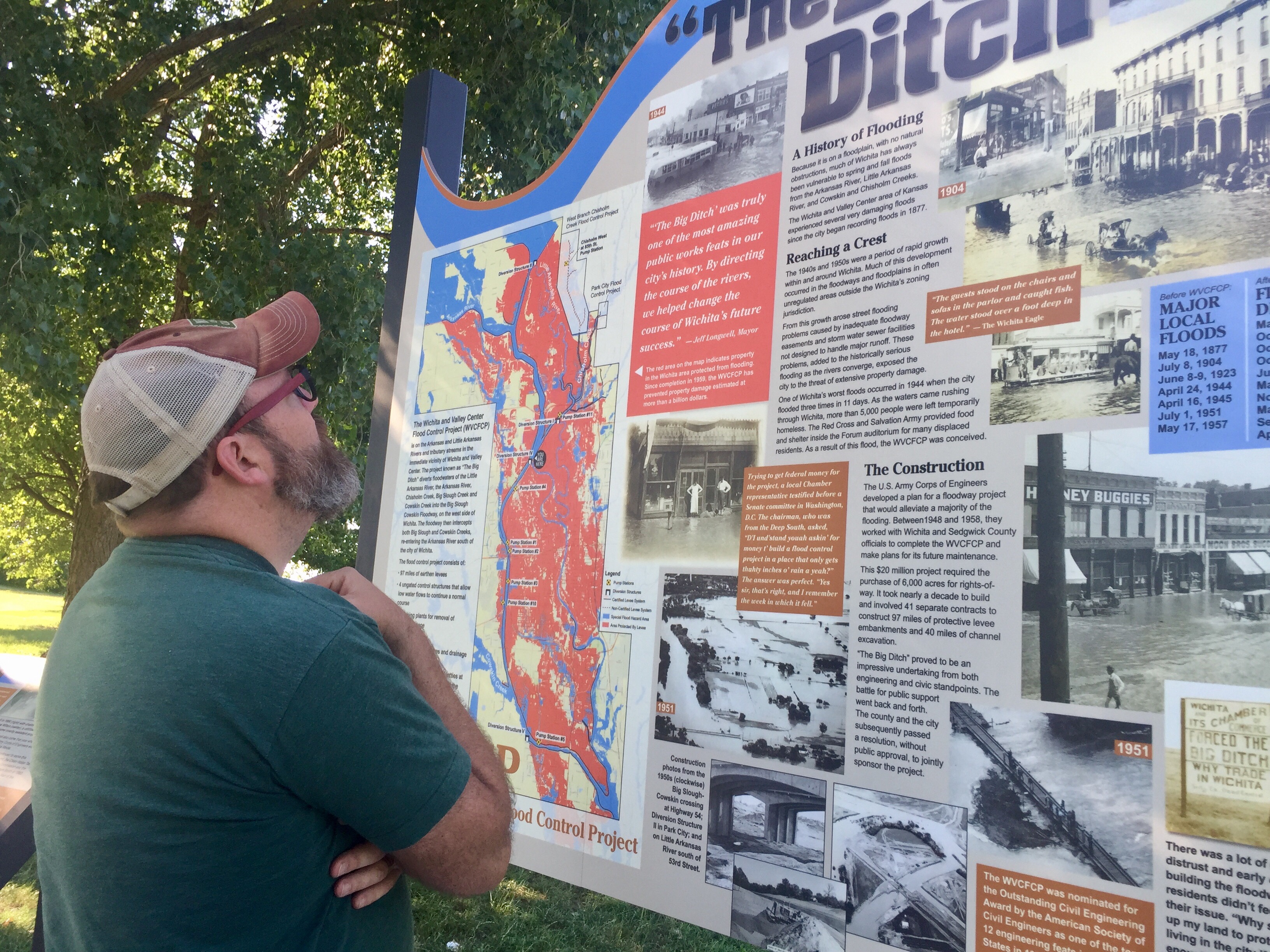 There are three colorful info boards that look to be new. One was information on Big Ditch Mitch and the others detailed history on floods in Wichita and the history of the Big Ditch. It was fascinating!