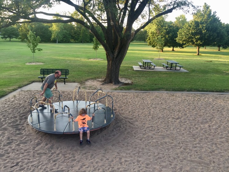 Mom Tips: We parked in the Girl Scout headquarters parking lot, right near a Little Free Library. There might be other parking available, but this was the most-accessible. There’s a fun playground in great condition, and picnic tables in the shade. This one will definitely be one we come back to, with a picnic and a book or two for the Little Free Library!