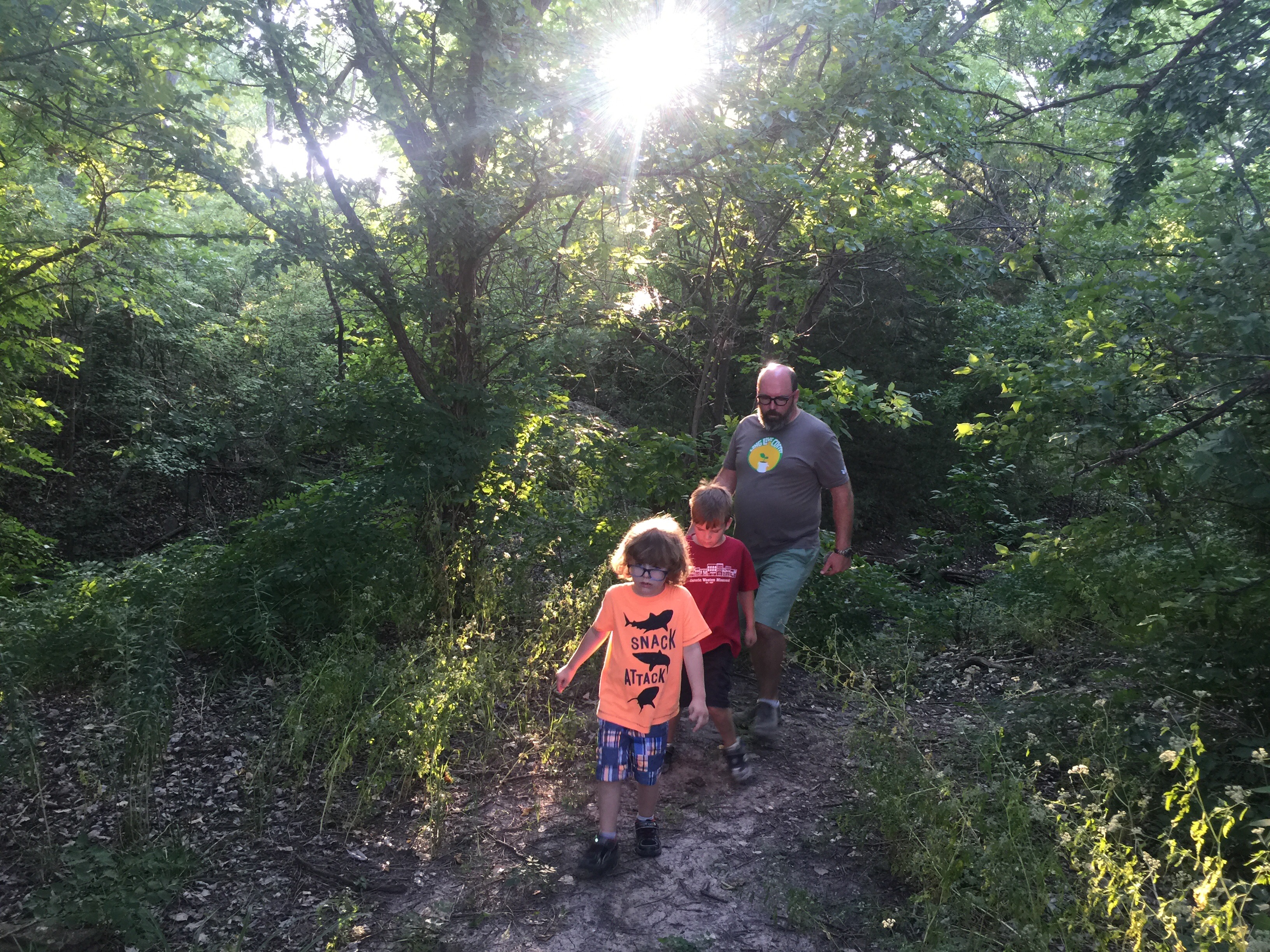 It’s been fun introducing Andy, Michelle and the boys to parks I grew up visiting. But this time Andy got to show us a park he grew up exploring. Cottonwood Park is a Wichita Wild Habitat Area in southeast Wichita. It can be accessed through two entrances, one at 1300 S. Armour and one at the end of Broadmoor Court.