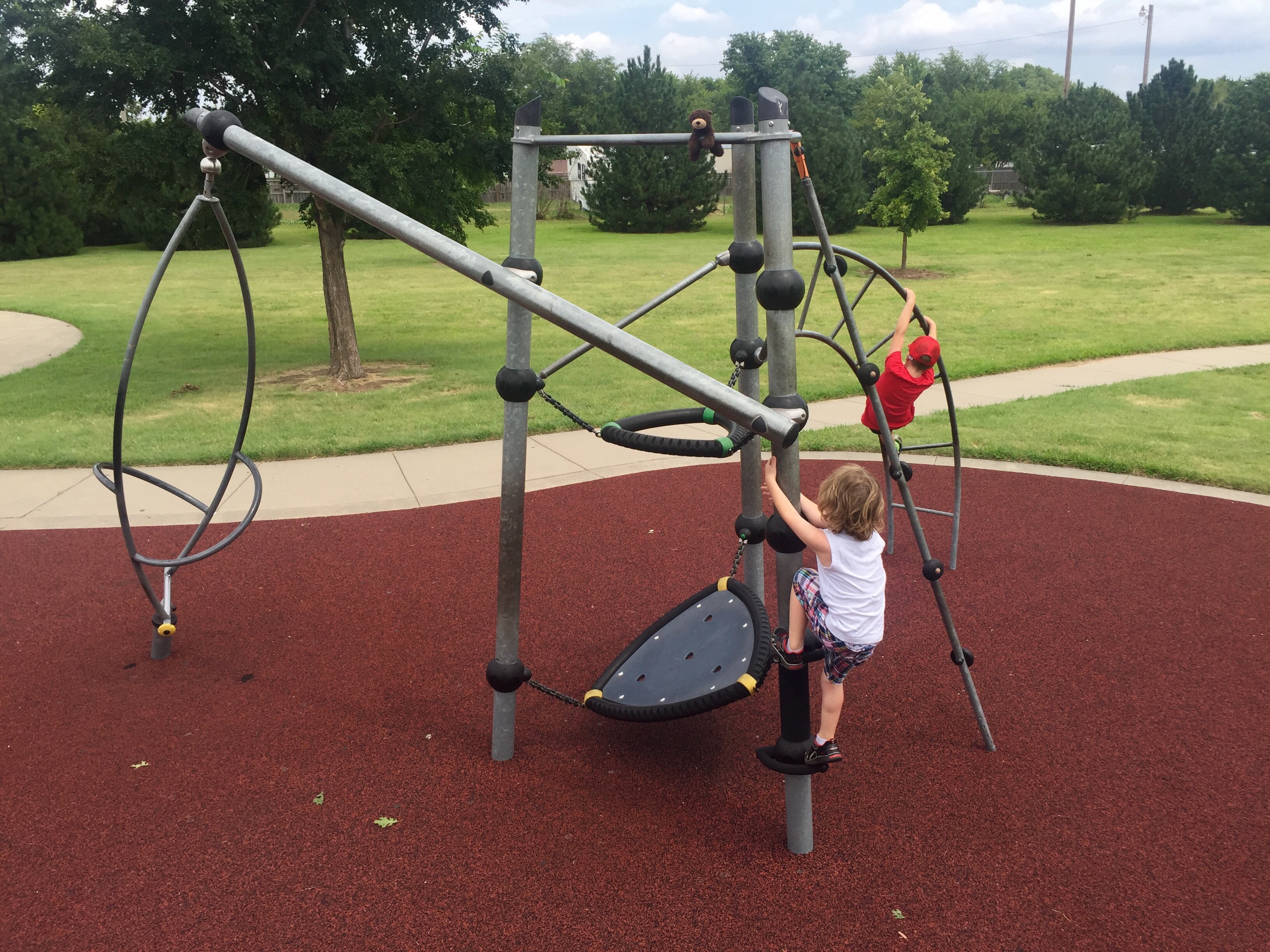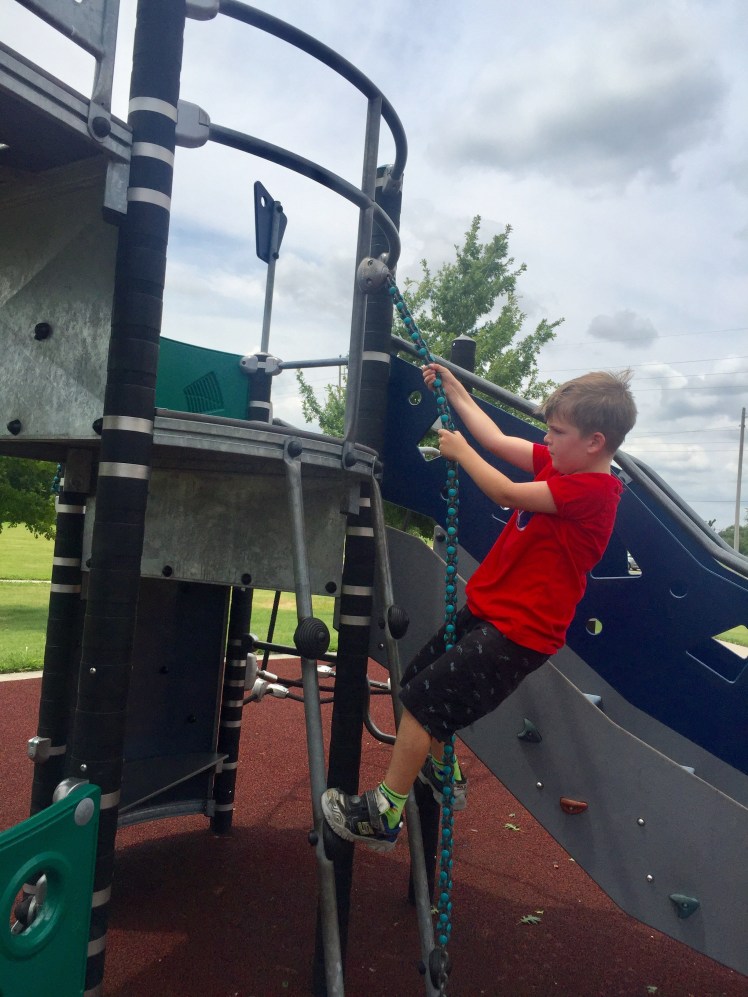 Kid Tips: Weston had a blast placing his stuffed animal “Beaverbear” into precarious situations and performing climbing rescue missions. Sully was a climbing machine – he loved this park!