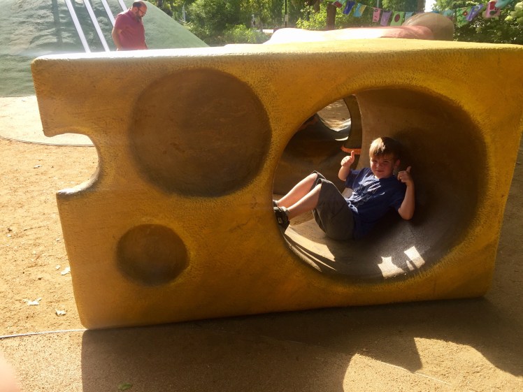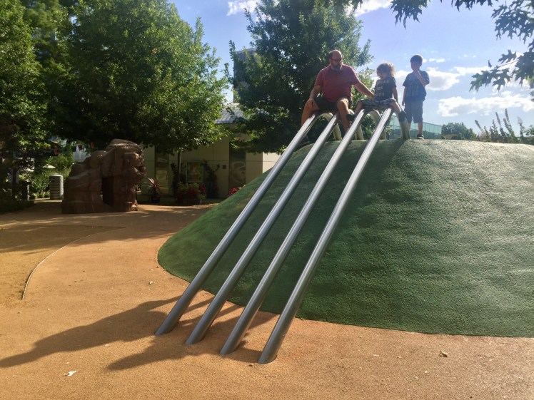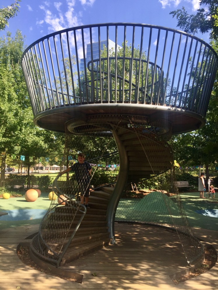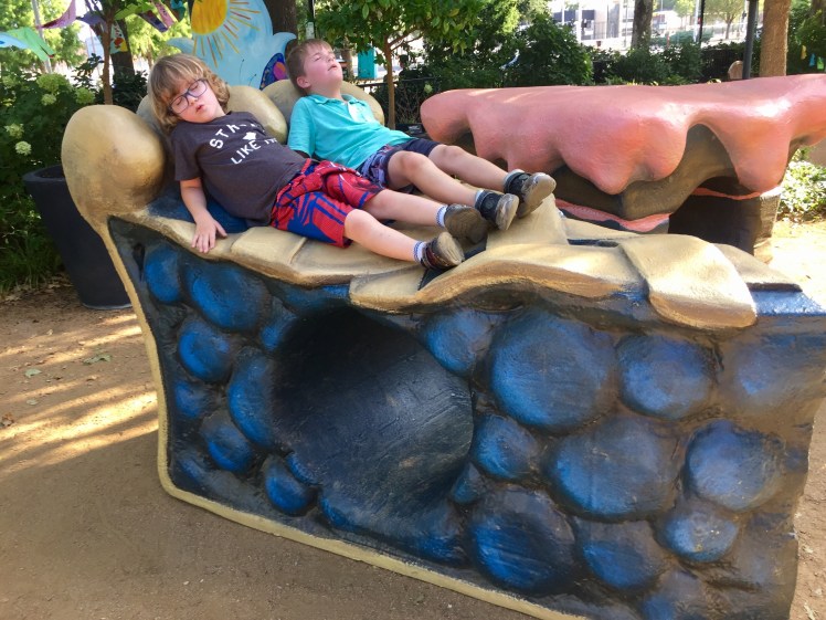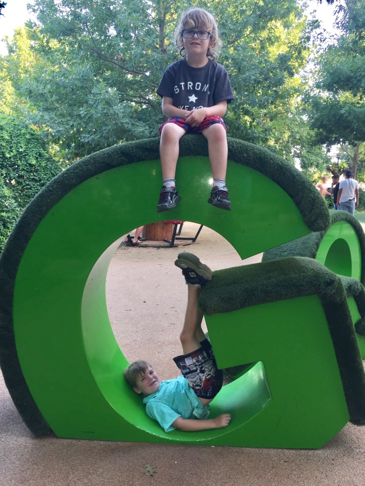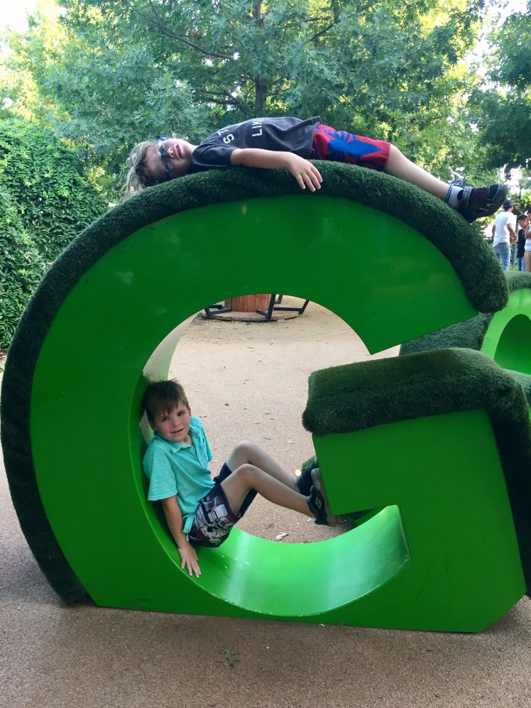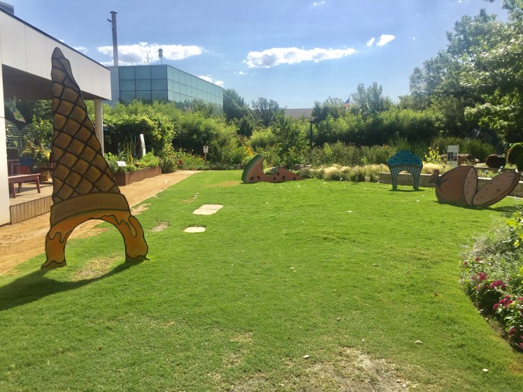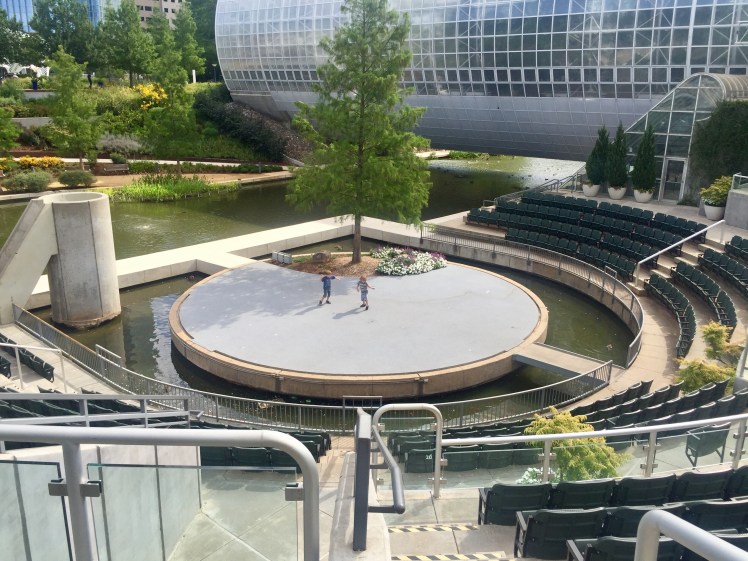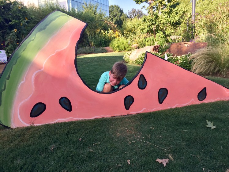 We traveled to Oklahoma City this weekend and were told we just HAD to visit their acclaimed Children's Garden and playground. We are so glad we did! They have a children's garden with a playground, amphitheater, botanical garden (which is FREE), a tropical rain-forest (Crystal Bridge – admission fee does apply to this), a dog park, TWO splash pads, and pop-up restaurants on site. We were only there a short time, so I know we probably missed something.