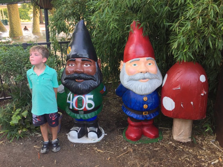 After following the caterpillar's trail, we looked at the actual children's garden section. We found some gnomes! ((Rolling with my gnomies….))