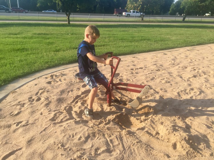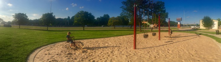 We found this park when driving on Kellogg. It's located off of Kellogg in the neighborhood near Hillside and Kellogg (Estelle & Kellogg Drive). It was not listed on the Wichita Parks and Rec website, but I was able to find some information online. It was established by the Wichita Parks and Rec and AARP, with the intent of creating a space for grandparents to enjoy with their grandchildren. And instead of just sitting and observing, they can work out and use the exercise station. We brought Grandpa Dan along with us to get his take.