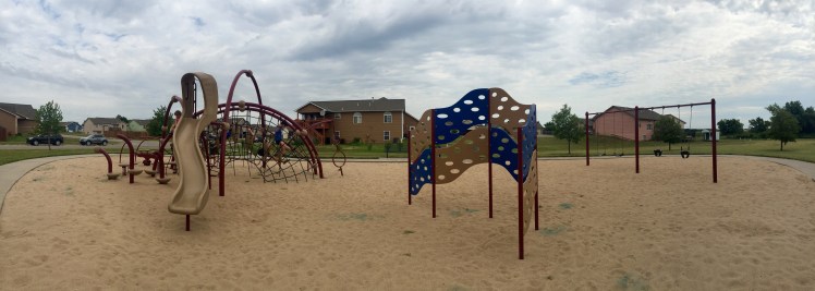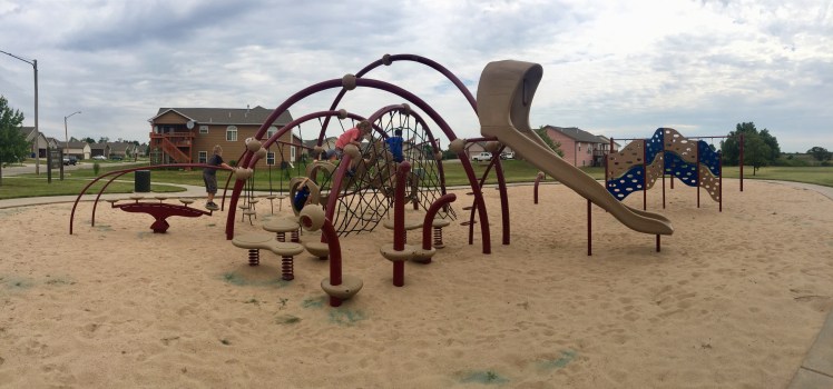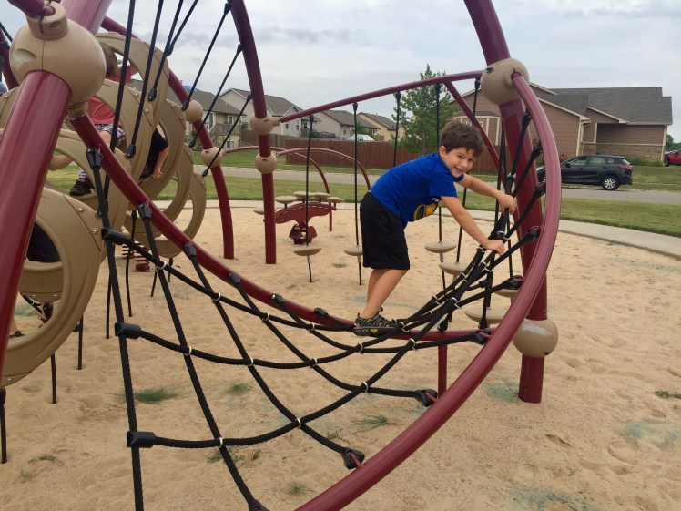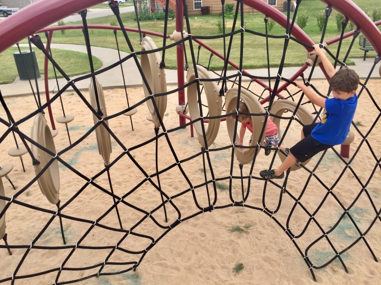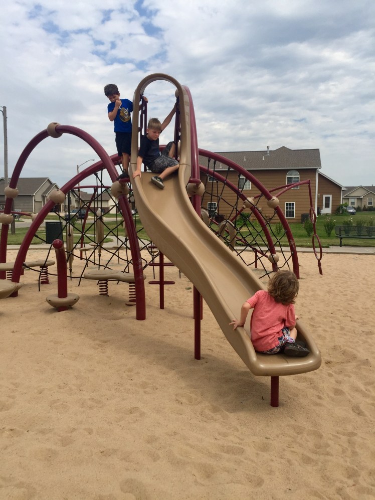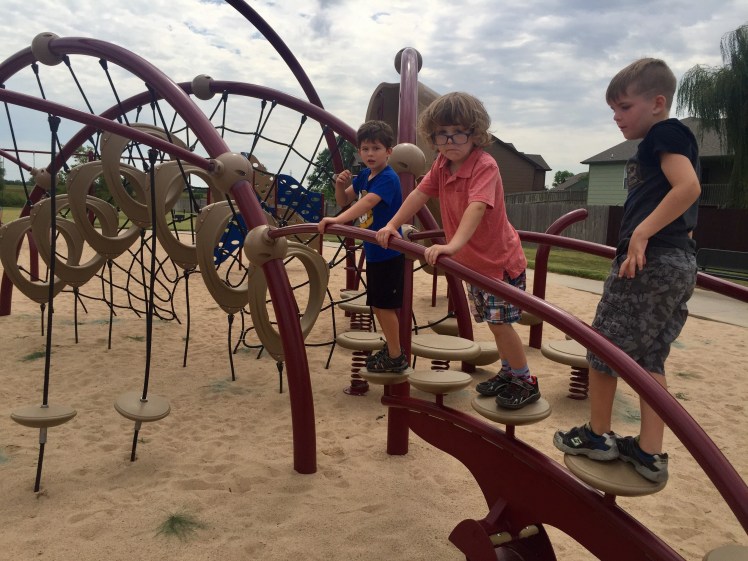 Mom Tips: If your kids like American Ninja Warrior or any show like that, they will LOVE this park. Weston, Sully and good friend E had a blast getting from one end of the equipment to the other without touching the sand (or LAVA as I was informed). There's not a water fountain or picnic table, so come prepared and ready for some FUN!
