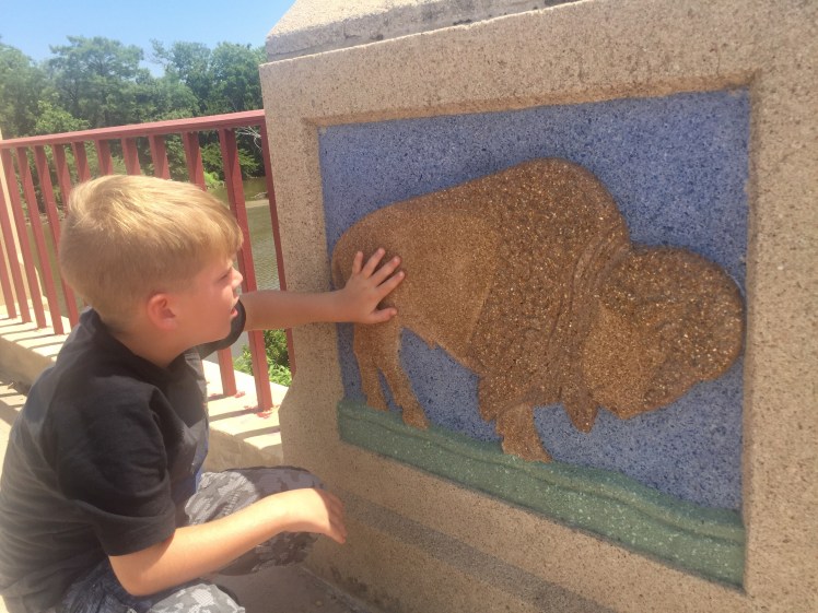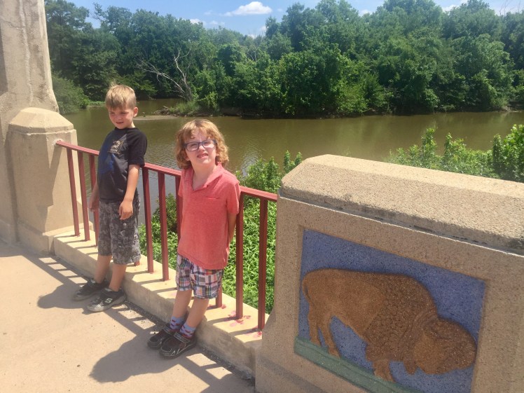 Minisa Bridge itself is pretty cool as well. Made in 1932, it features Native American designs and uses colored concrete and broken glass bottles, or "Carthalite." According to the Kansas Sampler, Wichita's Carthalite was a finalist for the 8 Wonders of Kansas Architecture: http://www.kansassampler.org/8wonders/architectureresults.php?id=54. I'm glad Michelle pointed it out to us, or we would have never known. How cool, and beautiful, is that?!?