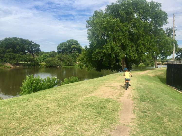 We brought our bikes and had a blast riding through the park near the river.