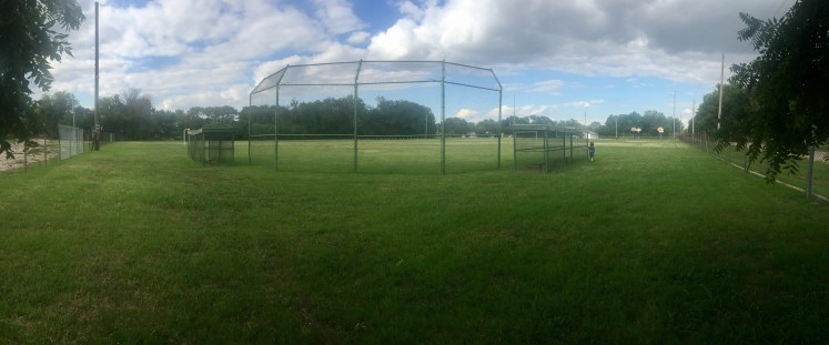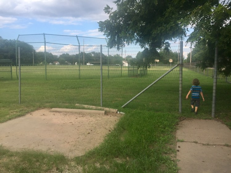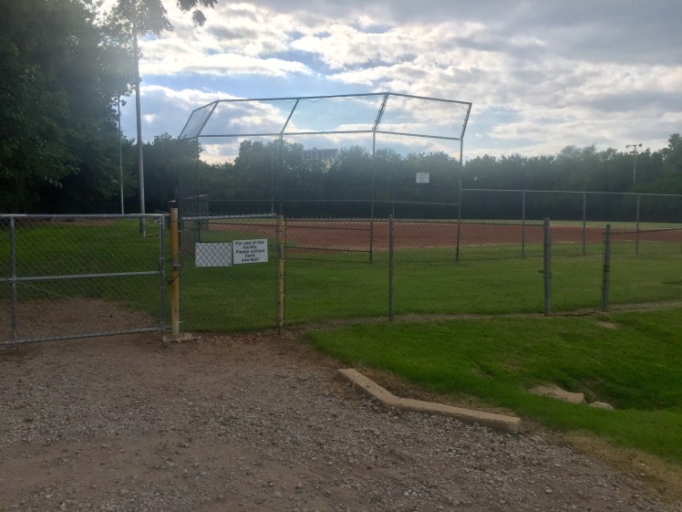 Riverview Park is in northwest Wichita, hidden back in a neighborhood with no signage (5137 N. Sullivan Ave). We found two baseball diamonds, one on the east side of the road, one on the west side. The field on the east side was not in great condition, while the one on the west side seemed to be taken care of. It was locked with a sign to call a number to reserve/use the field. We called the number and the gentleman told us that he leases the land (west side field only) from the City and he takes care of it.