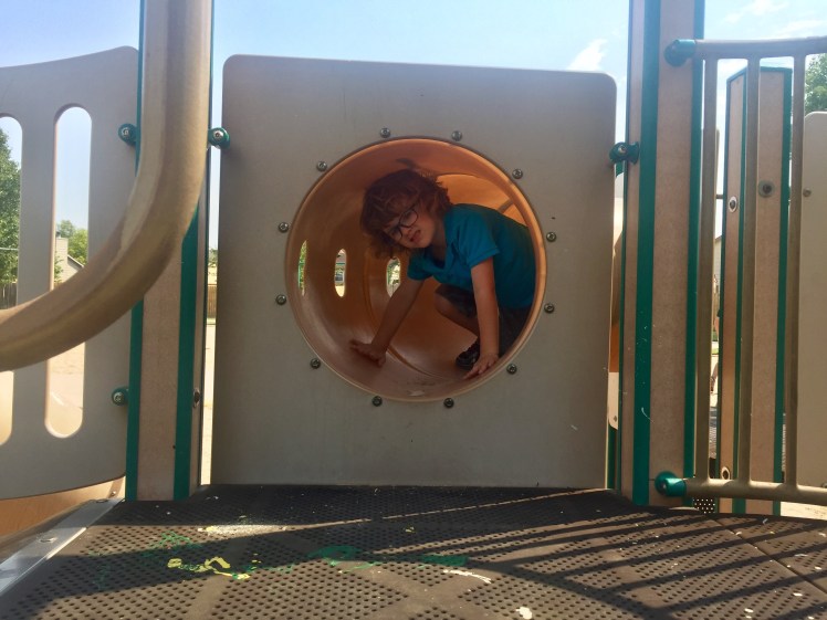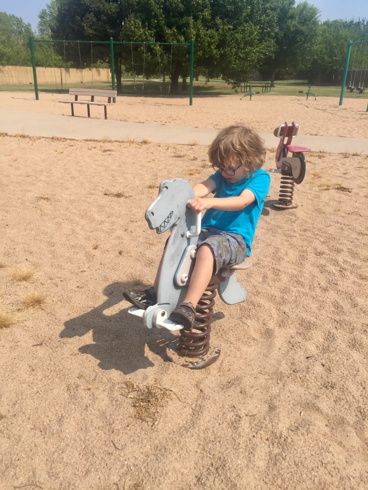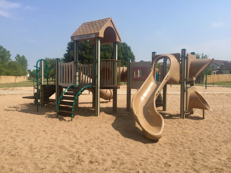 This park was hidden back in a southeast Wichita neighborhood (2907 S. West Parkway) and totally made the kids' day! It was another one where the entrance was between two houses, and makes you feel kind of like you're trespassing. But you come around that corner, and a playground opens up in front of you. Weston's shrieks were so funny!