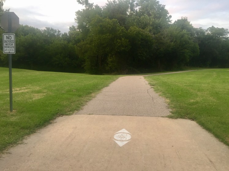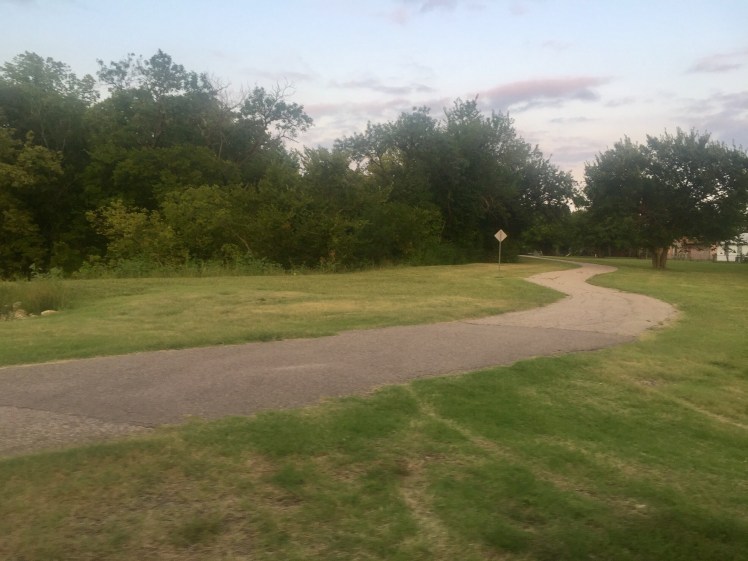 After hitting Chisholm Trail Park North, we drove to find Chisholm Greenway. We found it back in the northeast Wichita neighborhood near Brooks Middle School. According to the Wichita Parks and Rec website, Chisholm Greenway "runs along Chisholm Creek and connects Chisholm Creek Park and Dr. Glen Dey Park."