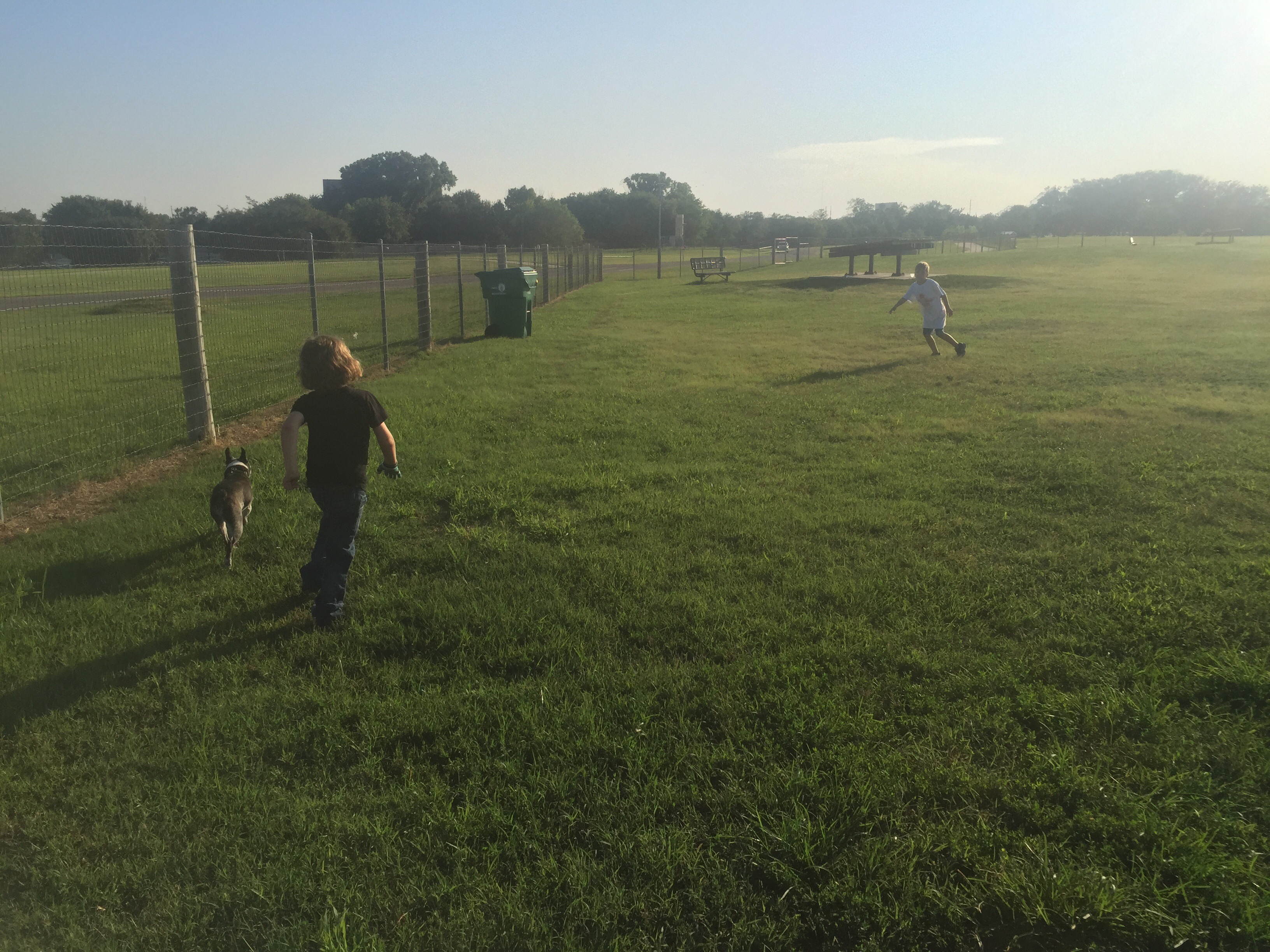 It’s a great dog park, Wichita’s first, and has two runs: one for large dogs and one for small dogs. This park does have some shade structures in the dog runs, that Tyson and the boys enjoyed.