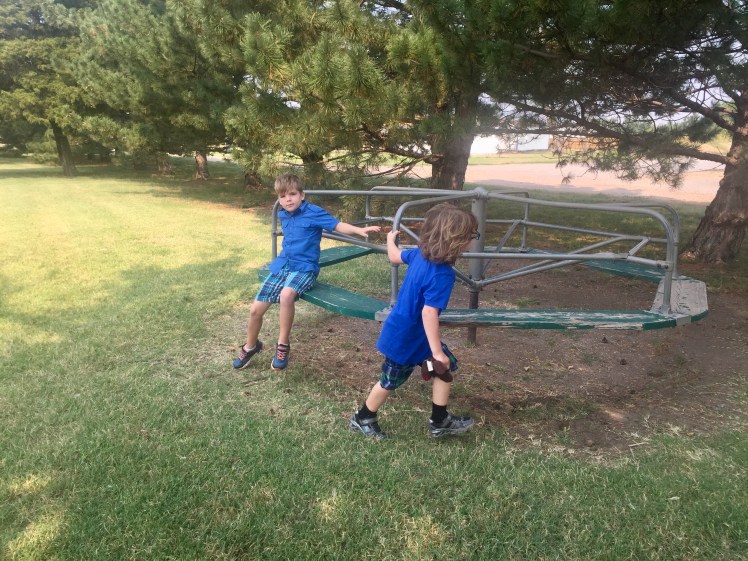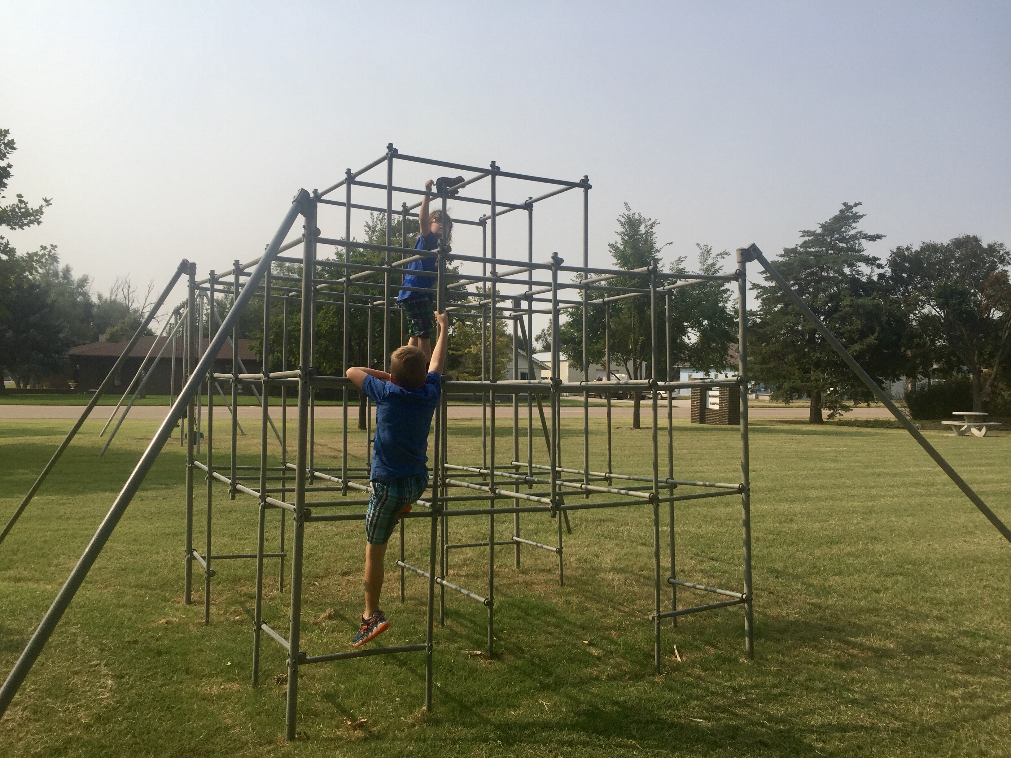 On the way to Big Basin we stopped in Minneola for a play pit stop. The boys loved the classic metal climbing structure.