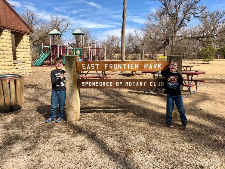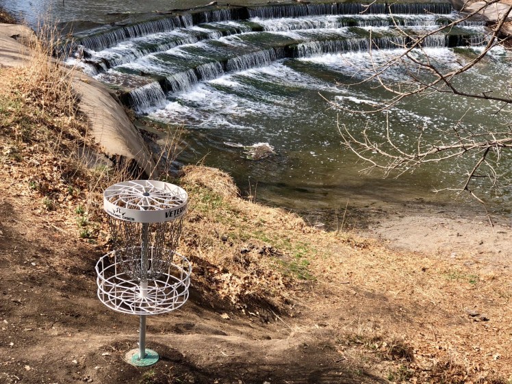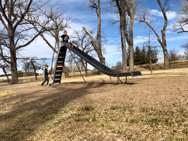 After our exciting trip to the Sternberg, we hit Frontier Park. There was a classic playset on the west side of the river, a more modern one on the east side, and a disc golf course running over both.